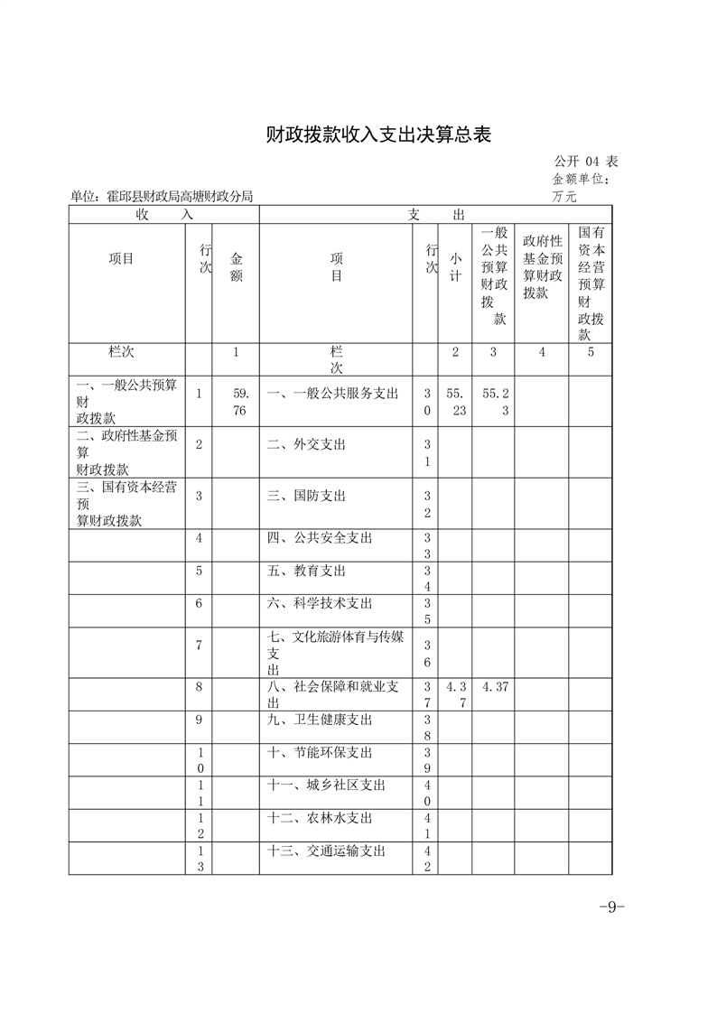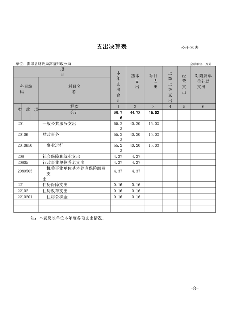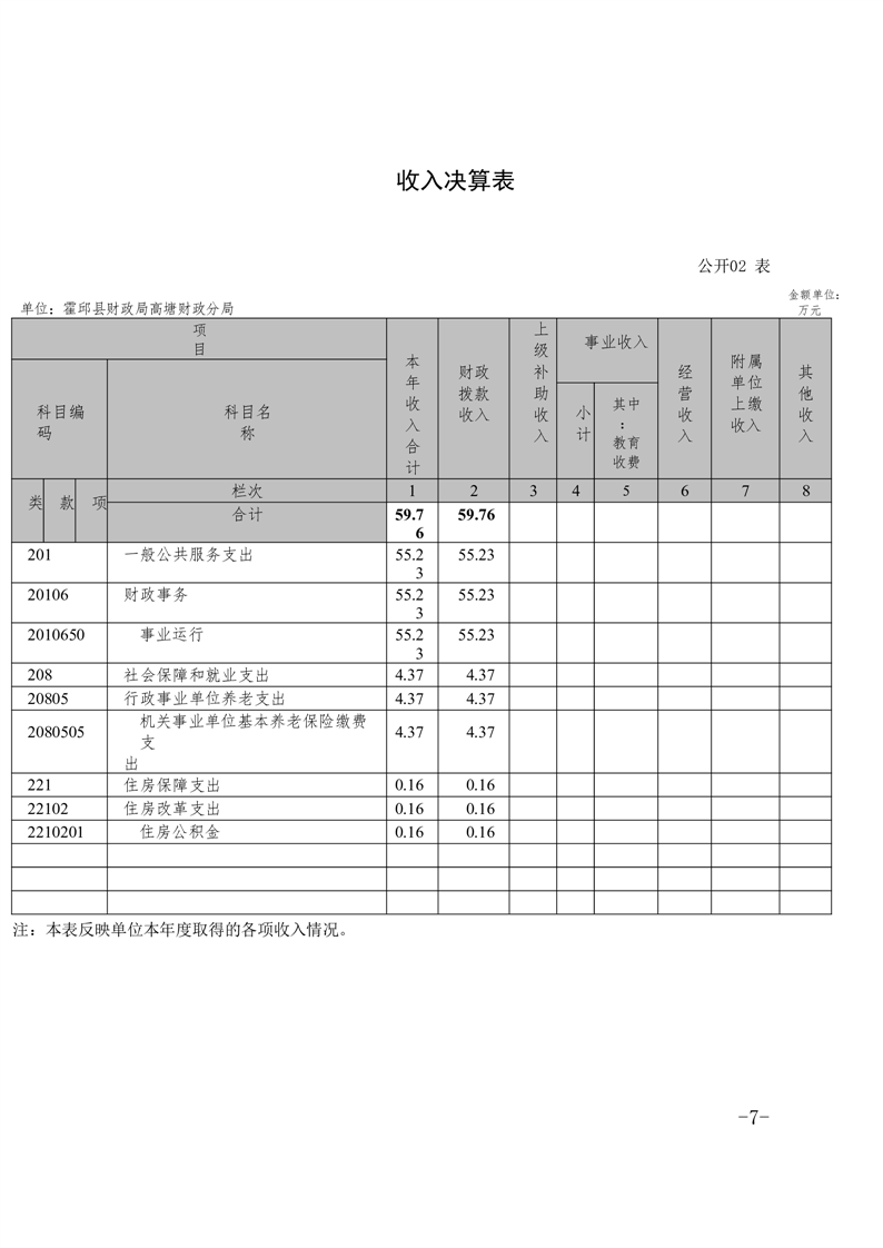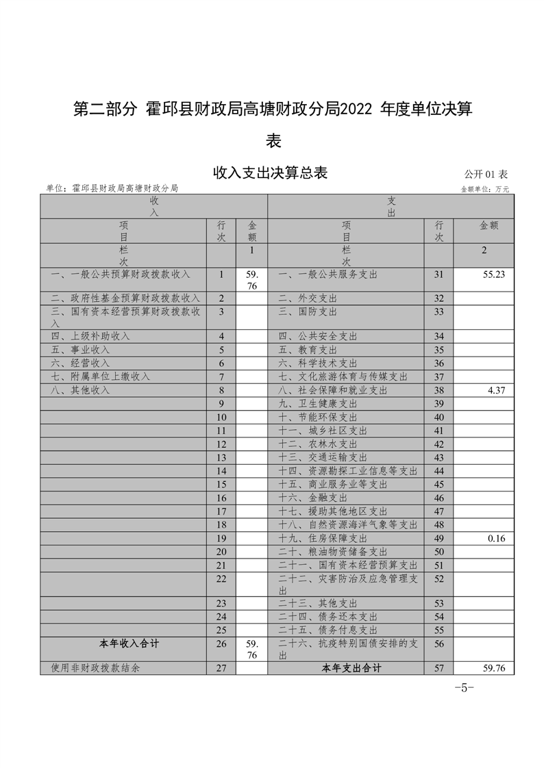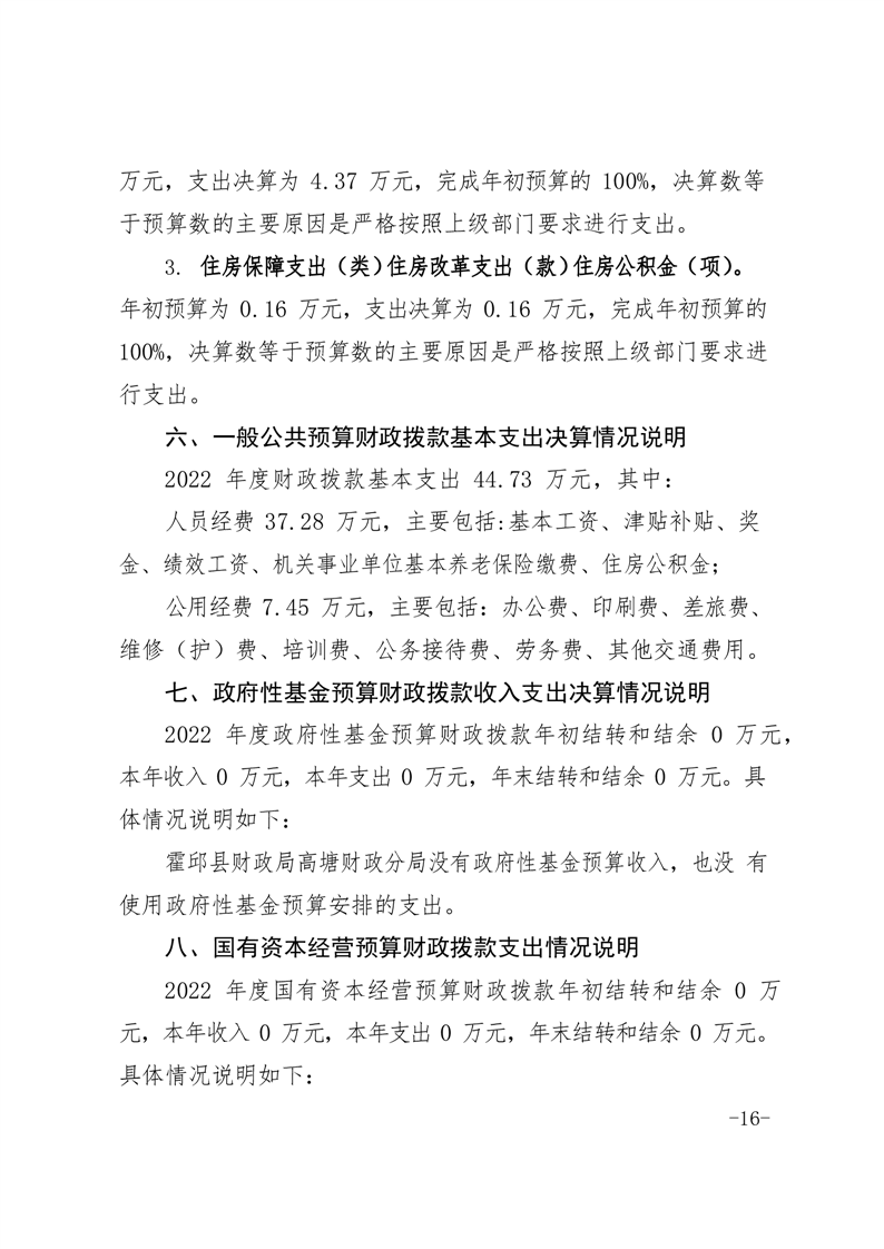 霍邱县高塘财政分局2022年单位决算公开