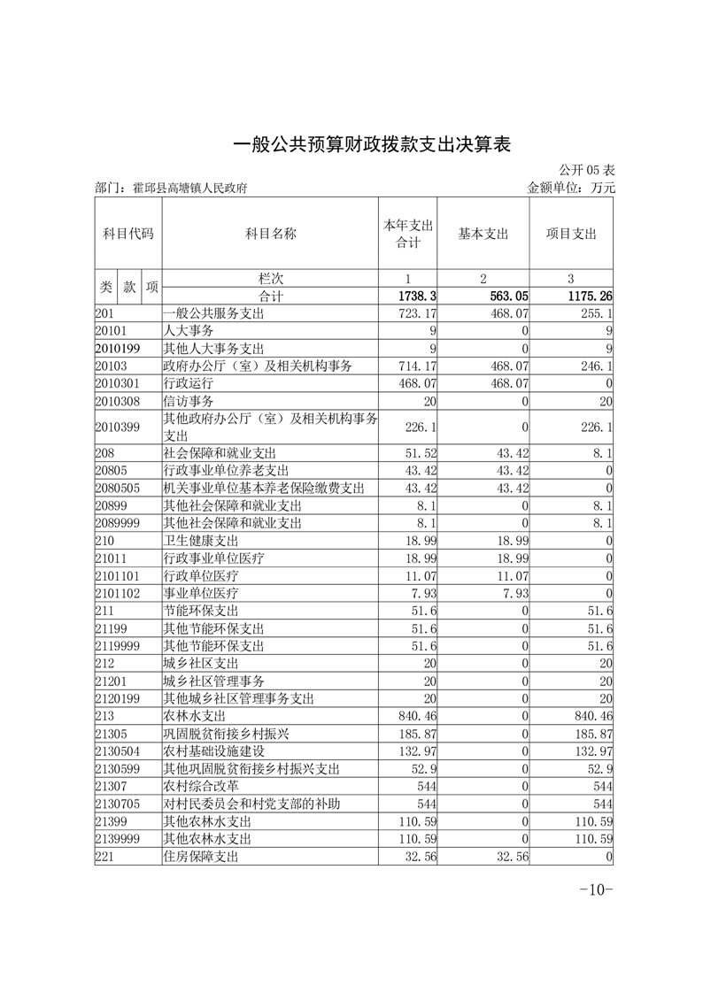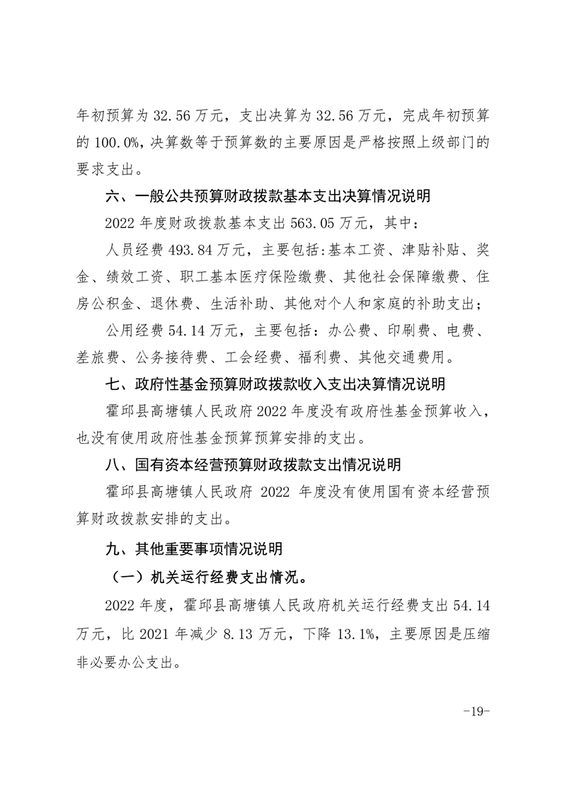 高塘镇人民政府2022年度部门决算公开及附表