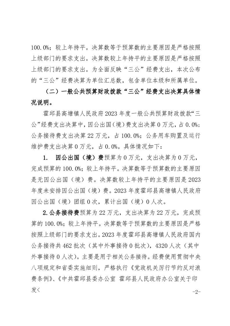 霍邱县高塘镇人民政府2023年度一般公共预算财政拨款“三公“经费支出决算情况表
