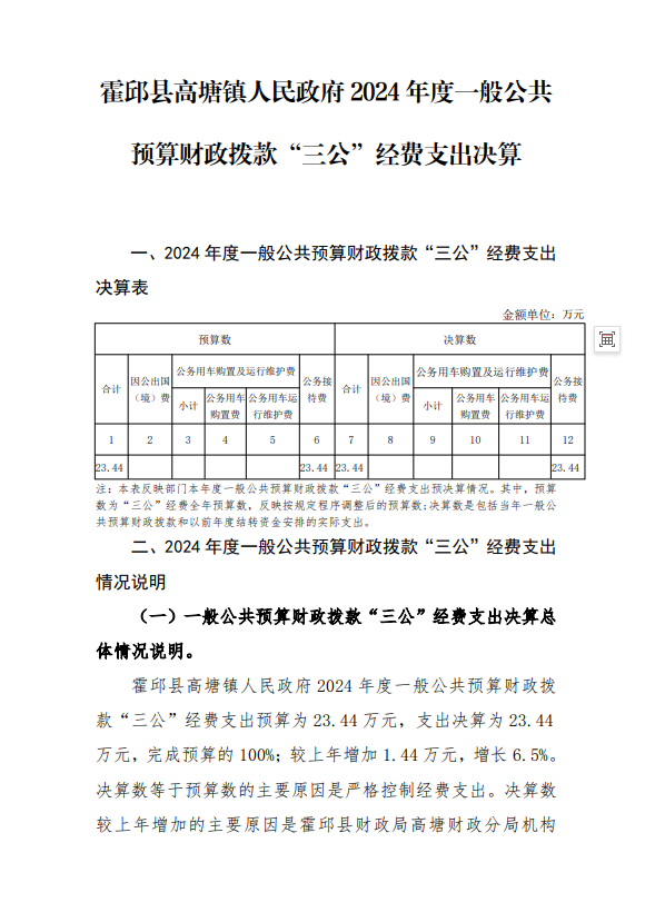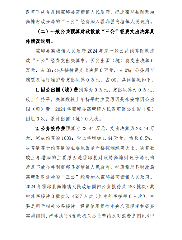 霍邱县高塘人民政府2024年度一般公共预算财政拨款“三公”经费支出决算公开