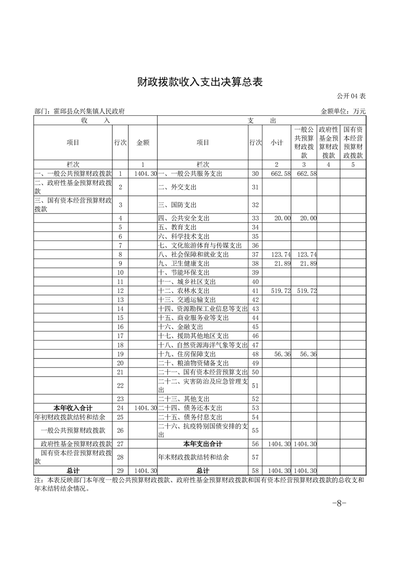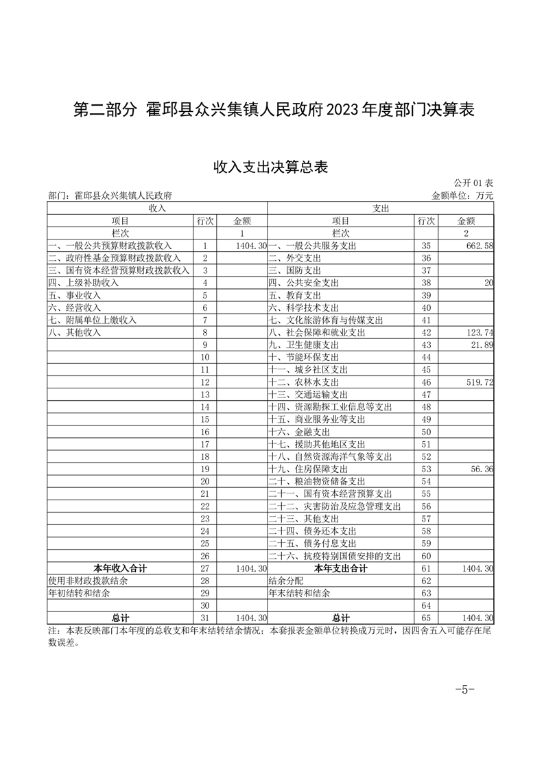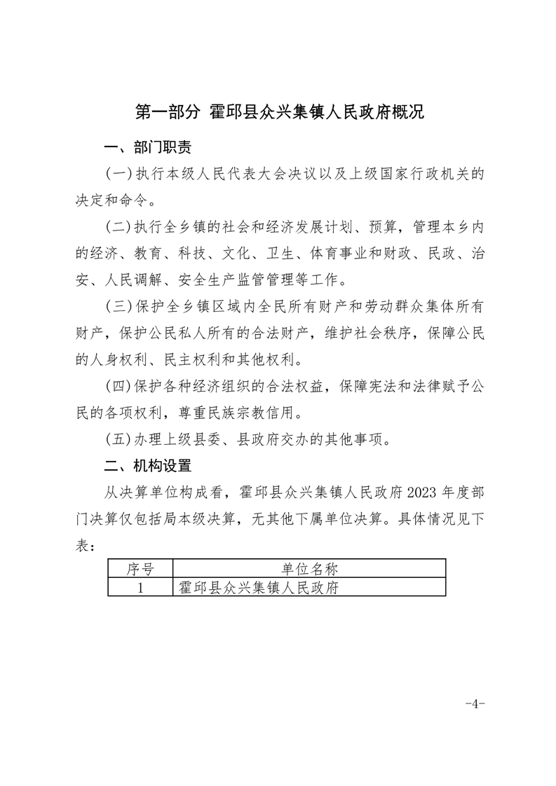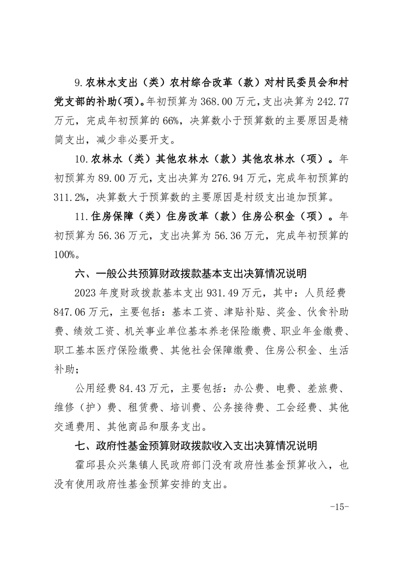 霍邱县众兴集镇人民政府2023年度部门决算公开