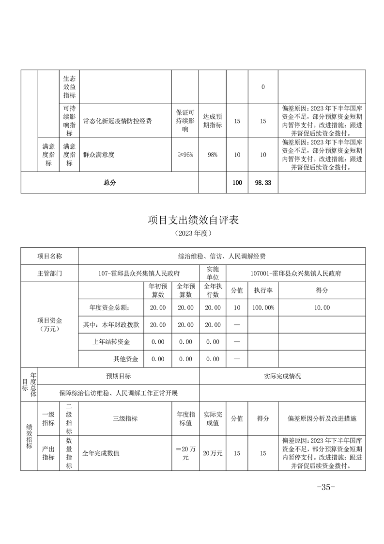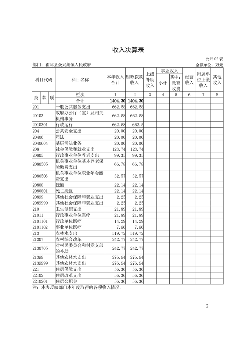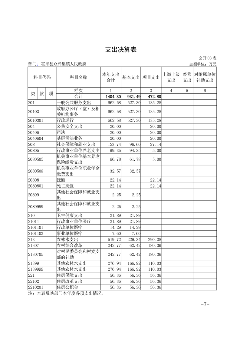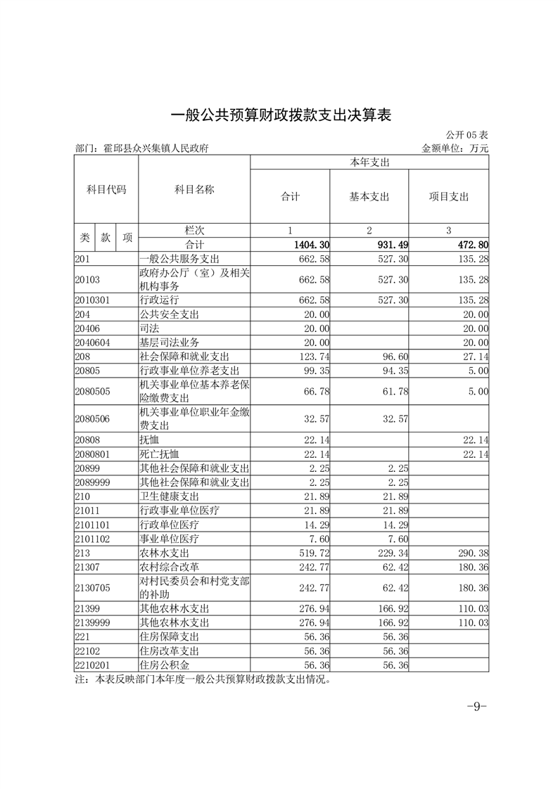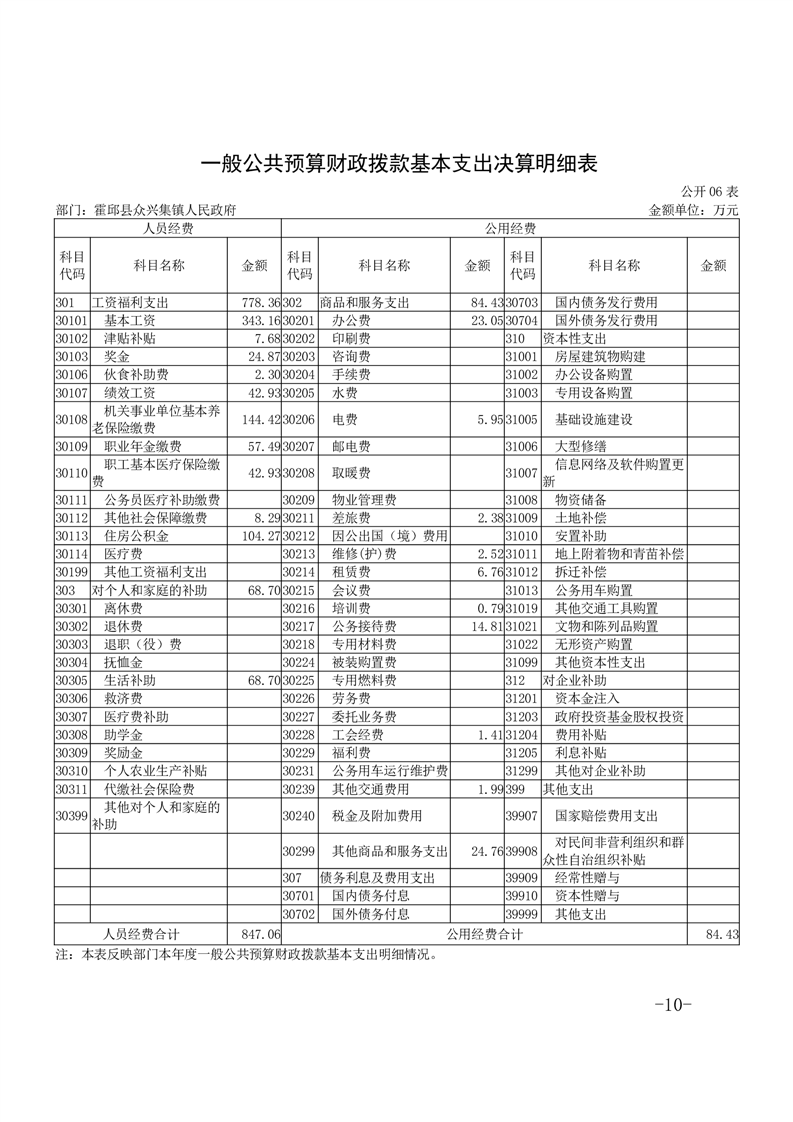 霍邱县众兴集镇人民政府2023年度部门决算公开
