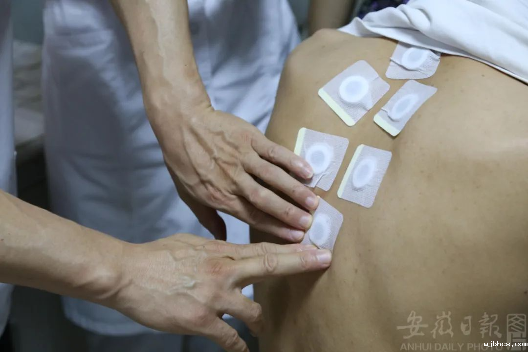 居民在阜南县中医院开贴“三伏贴”。(田鋆生 摄)
