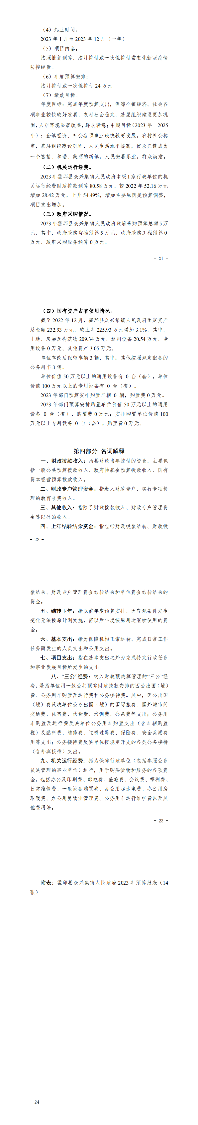 霍邱县众兴集镇人民政府2023年度预算公开