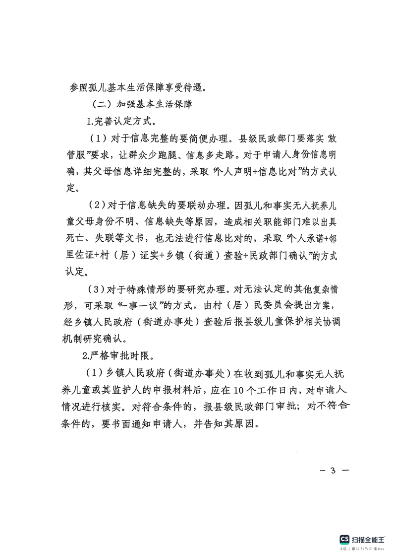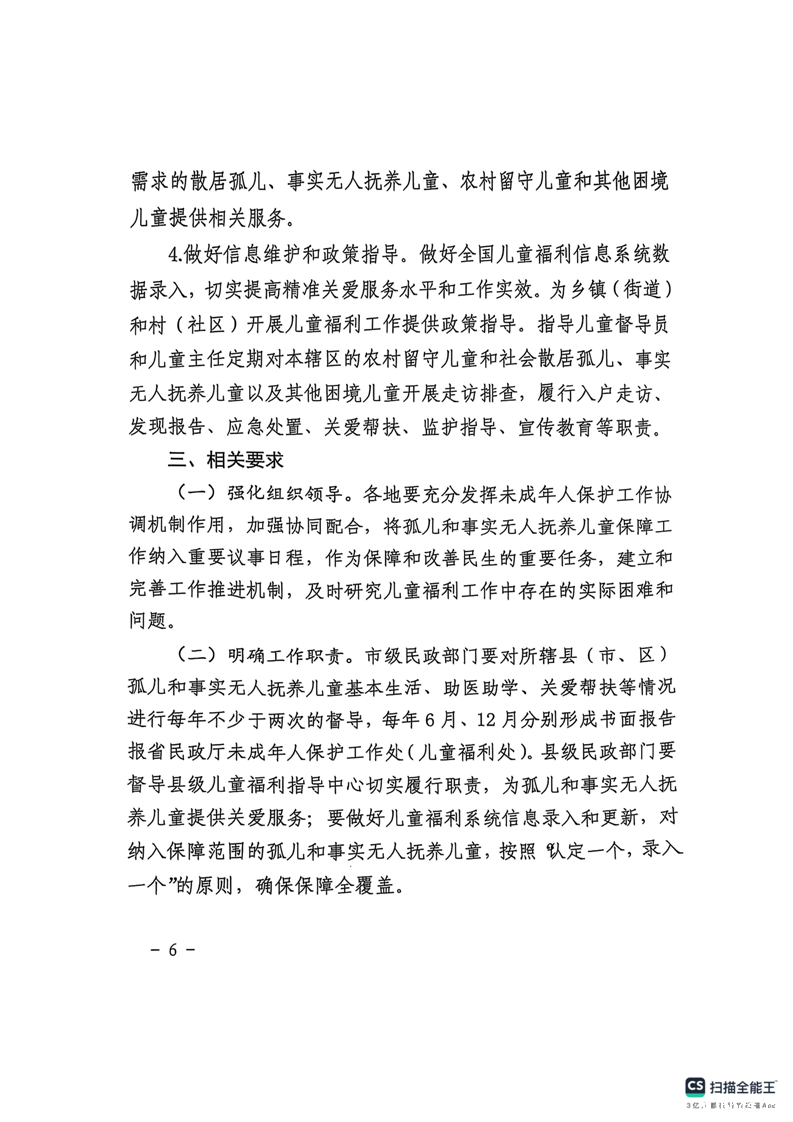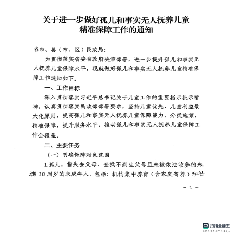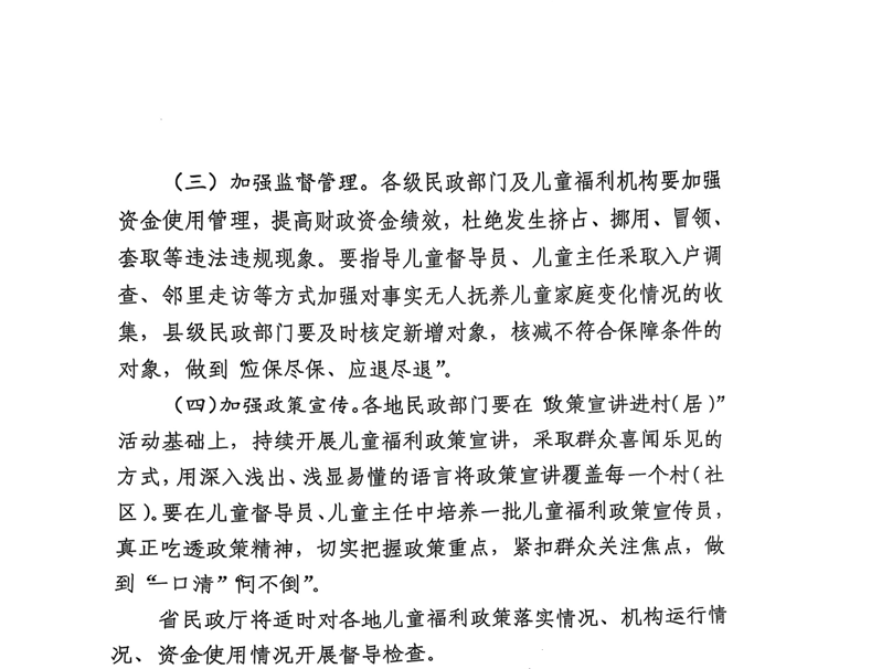 【管理办法】关于进一步做好孤儿和事实无人抚养儿童精准保障工作的通知