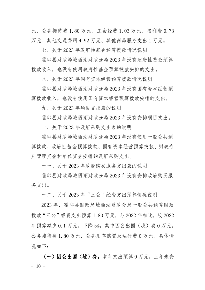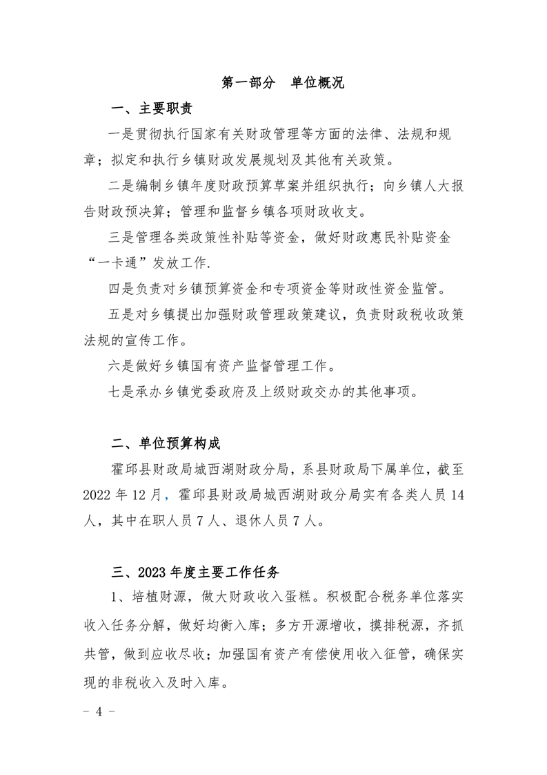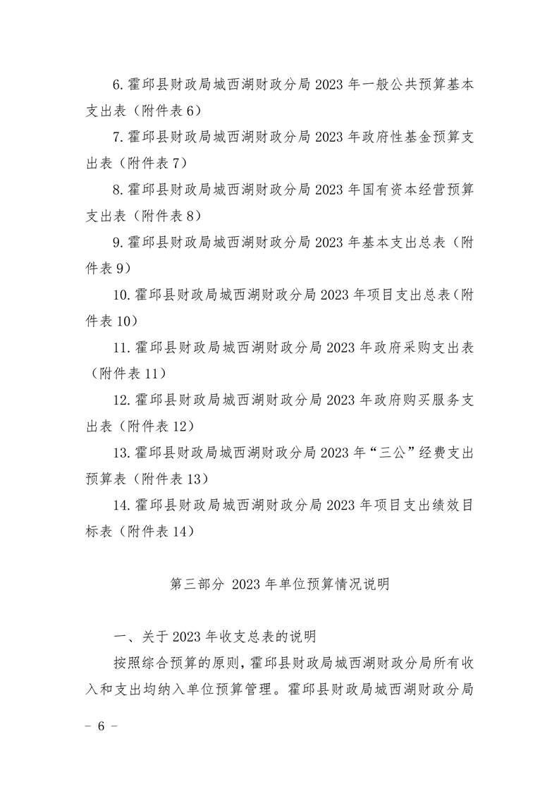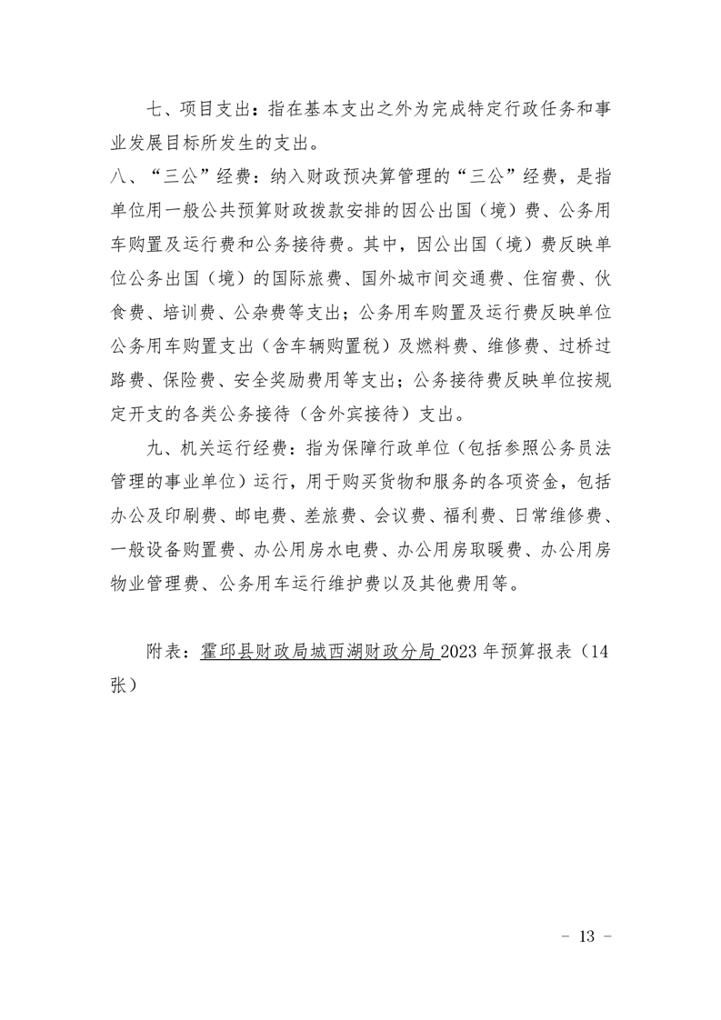 霍邱县财政局城西湖财政分局2023 年单位预算公开