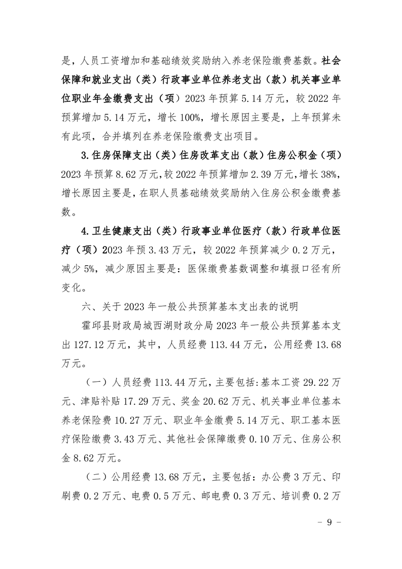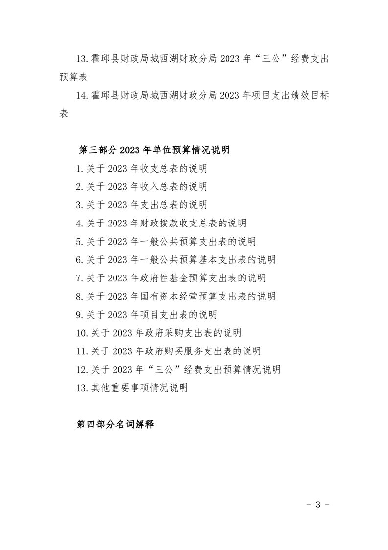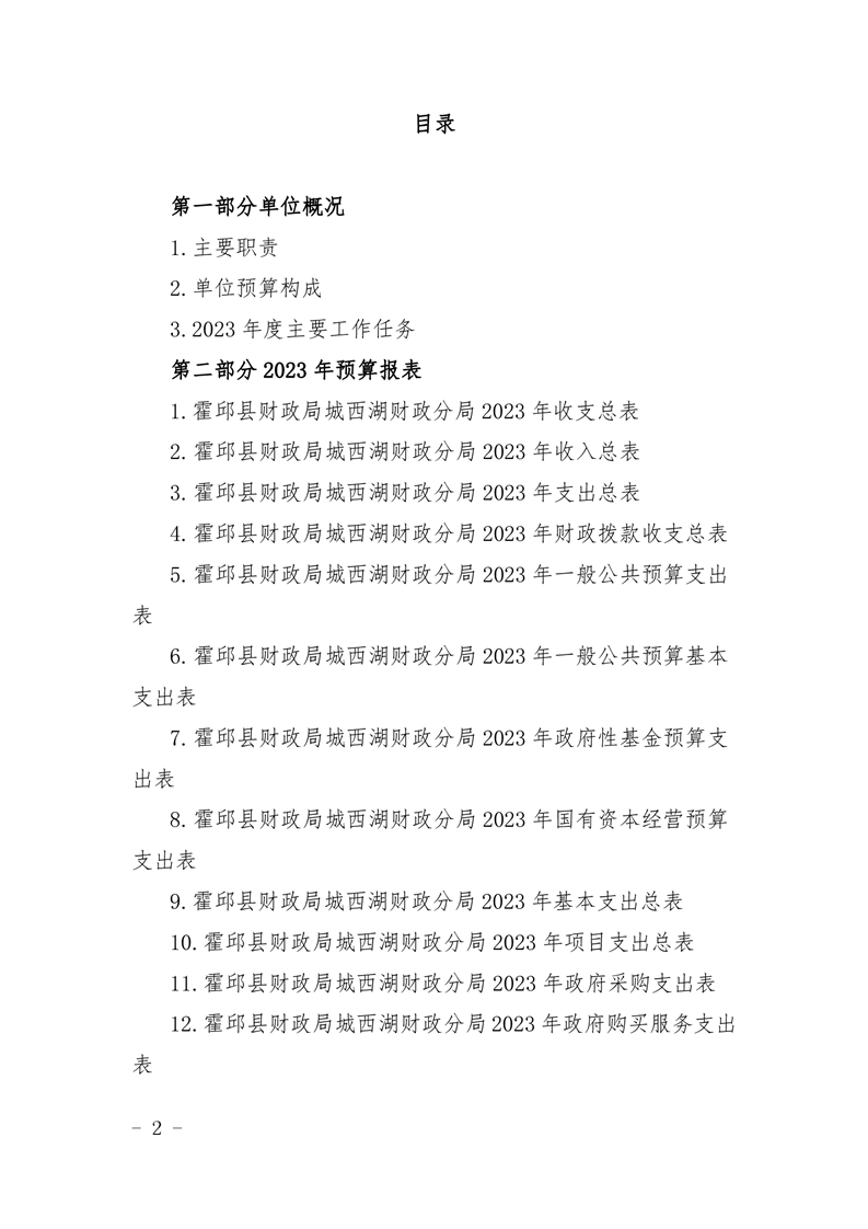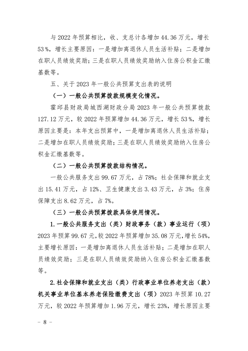 霍邱县财政局城西湖财政分局2023 年单位预算公开