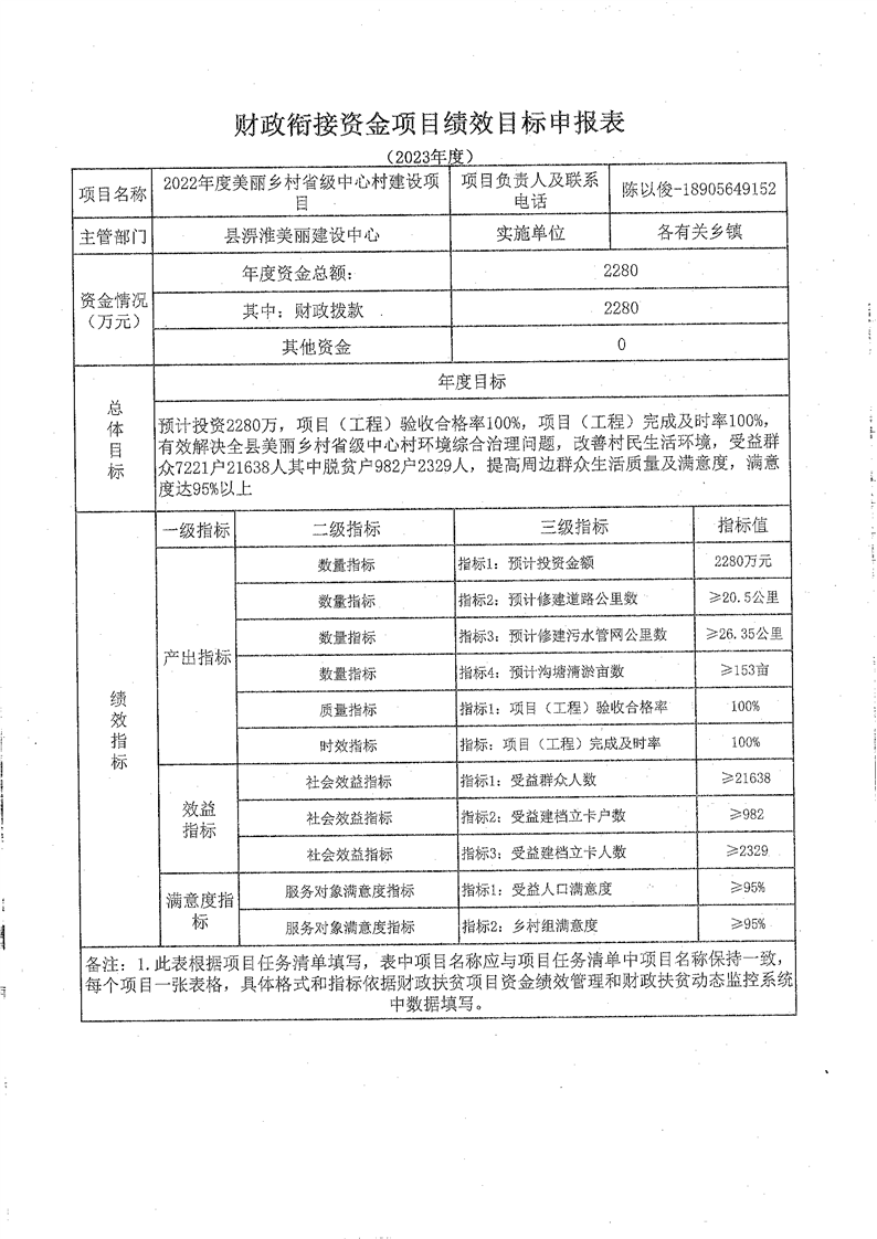 霍乡振项字[2022]23号-关于2023年霍邱县省级美丽乡村中心村建设项目资金安排的批复