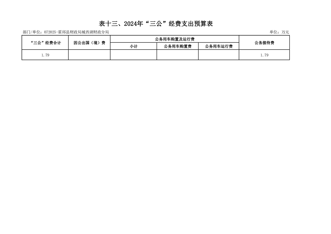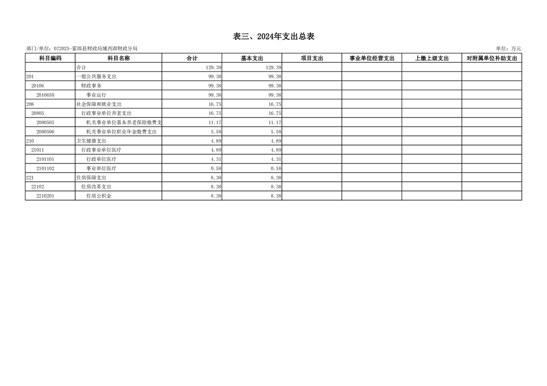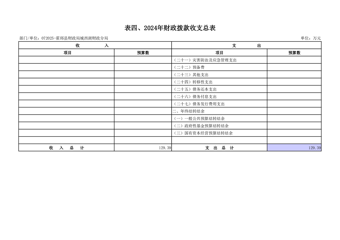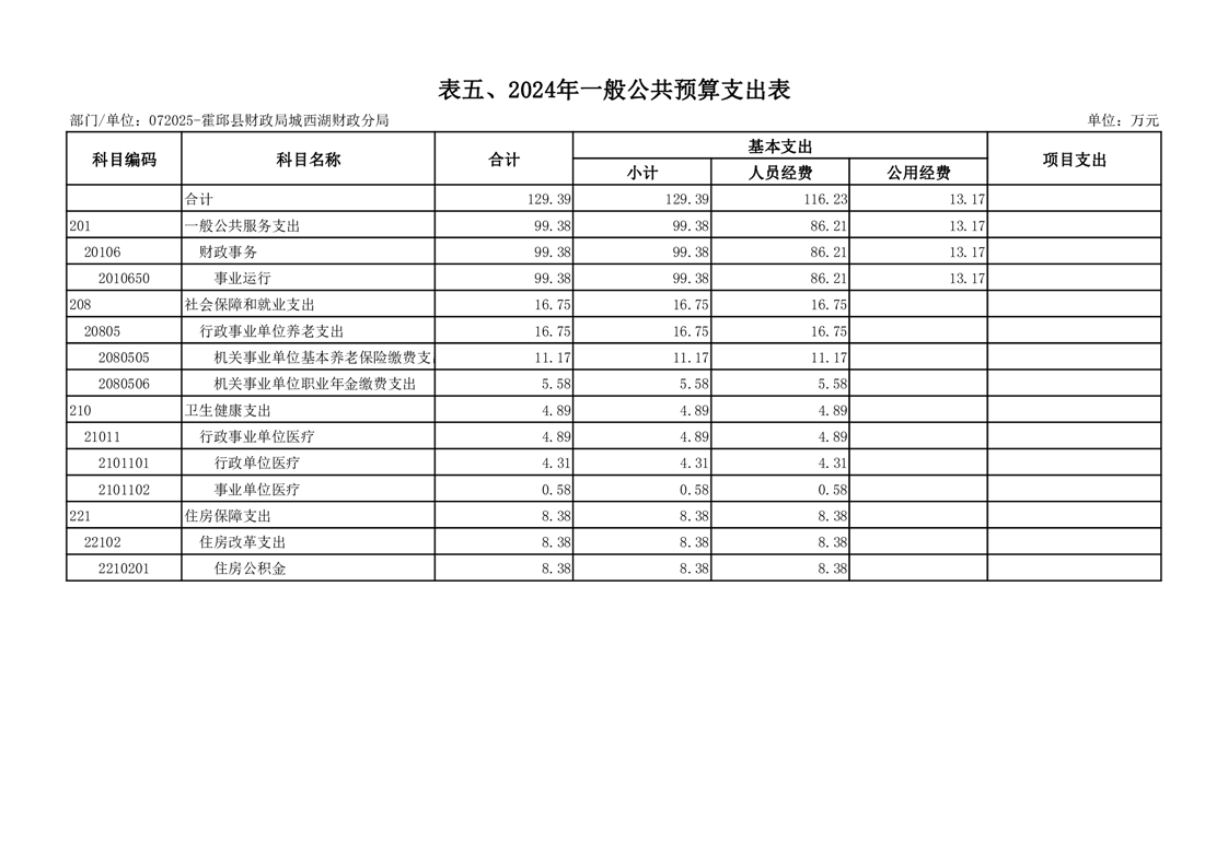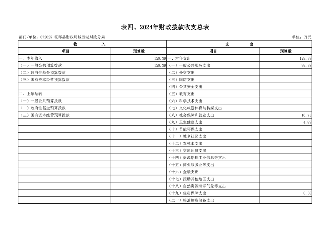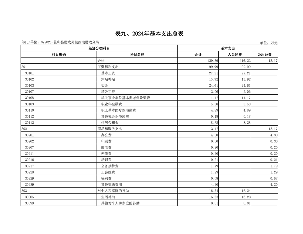 霍邱县财政局城西湖财政分局2024年单位预算公开报表附表