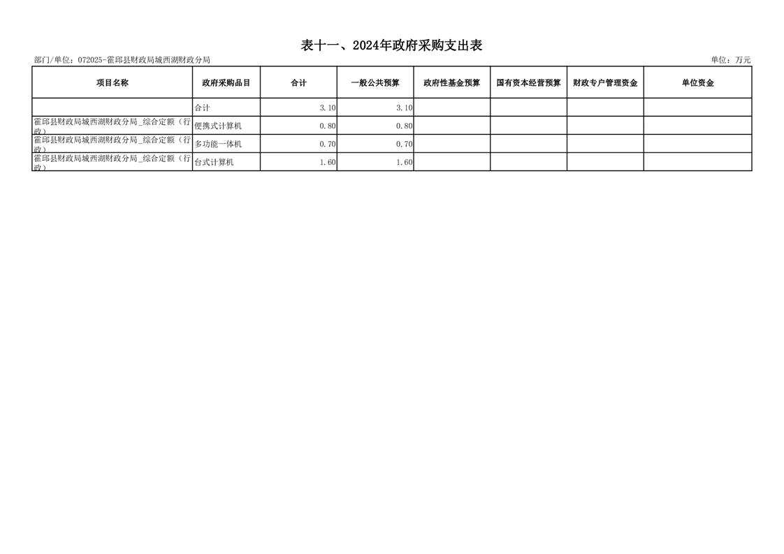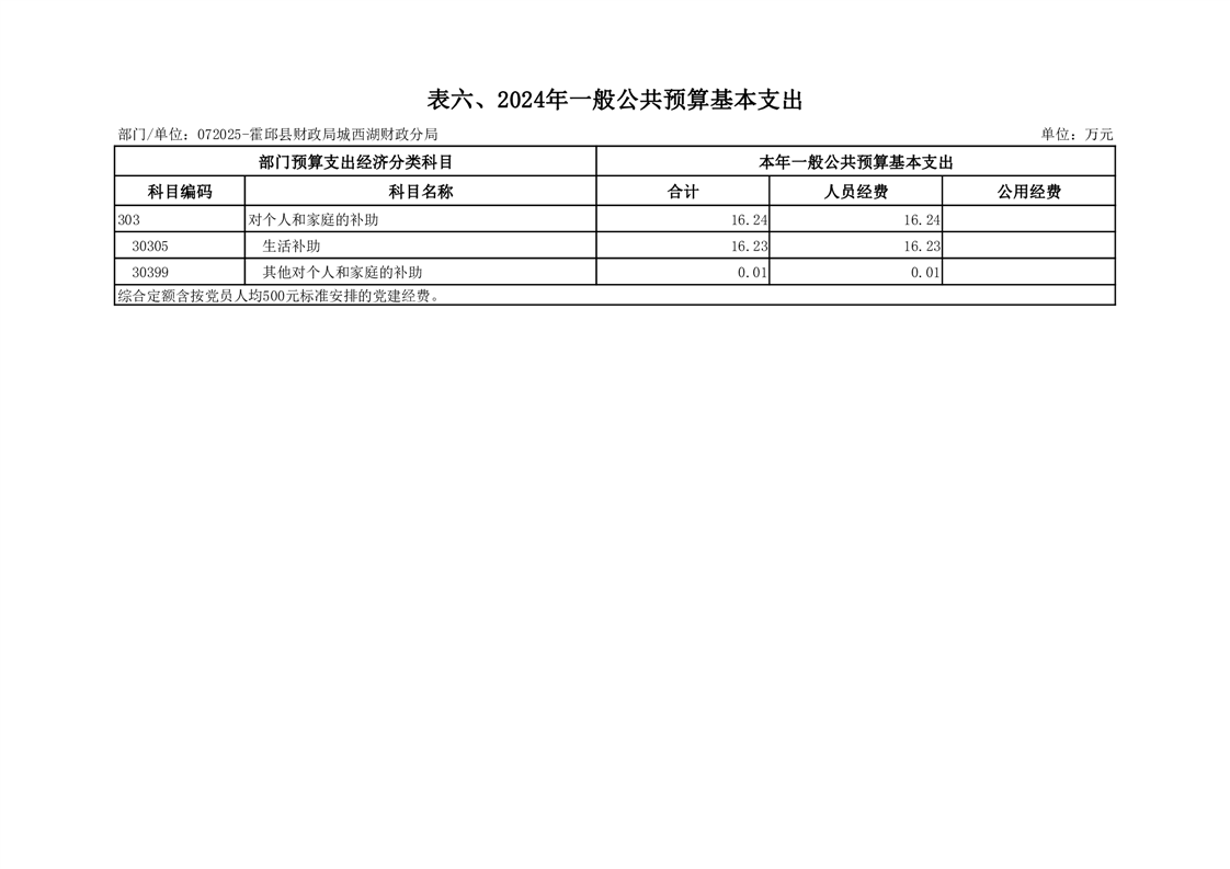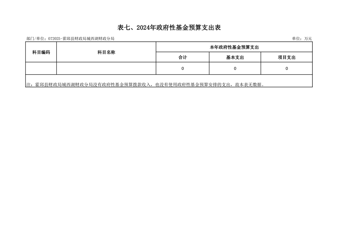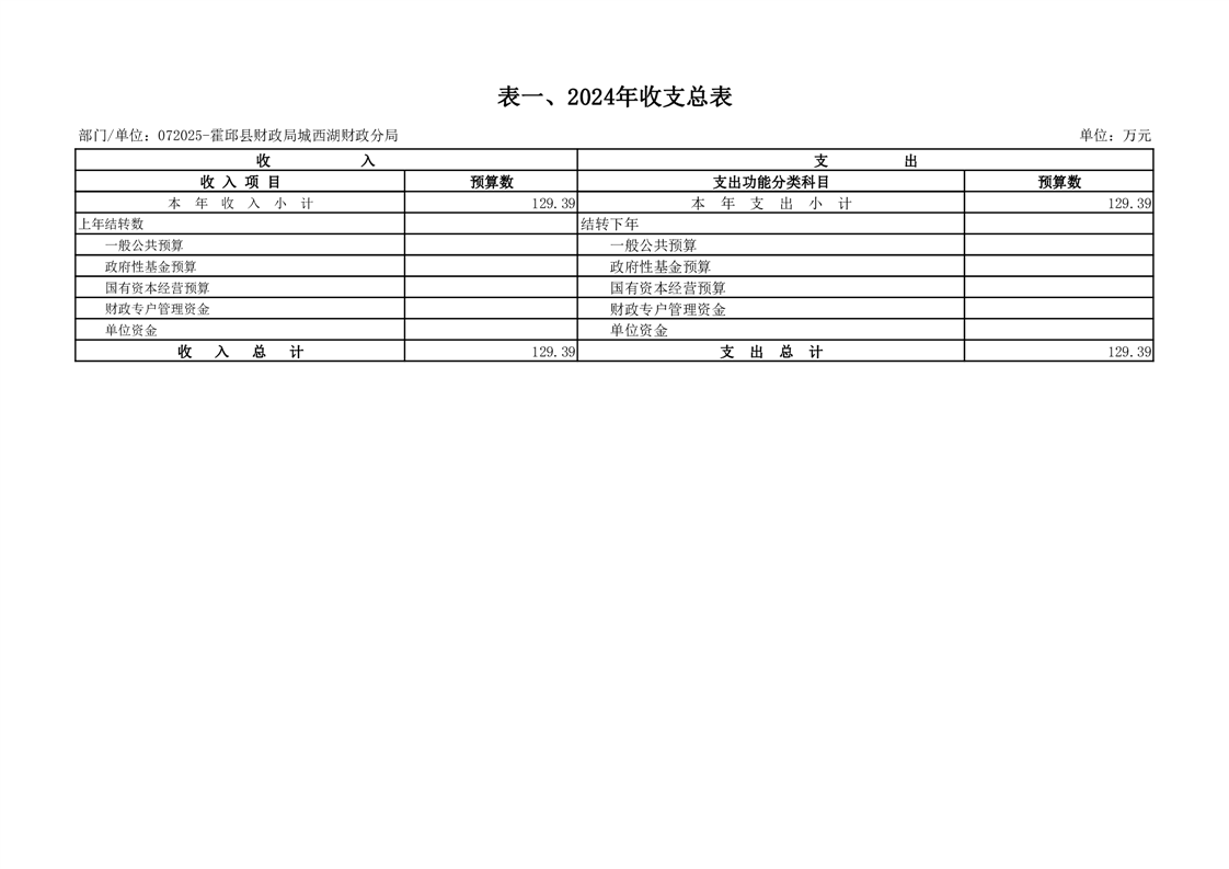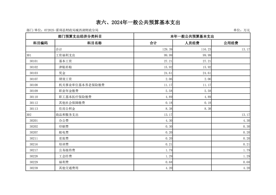 霍邱县财政局城西湖财政分局2024年单位预算公开报表附表
