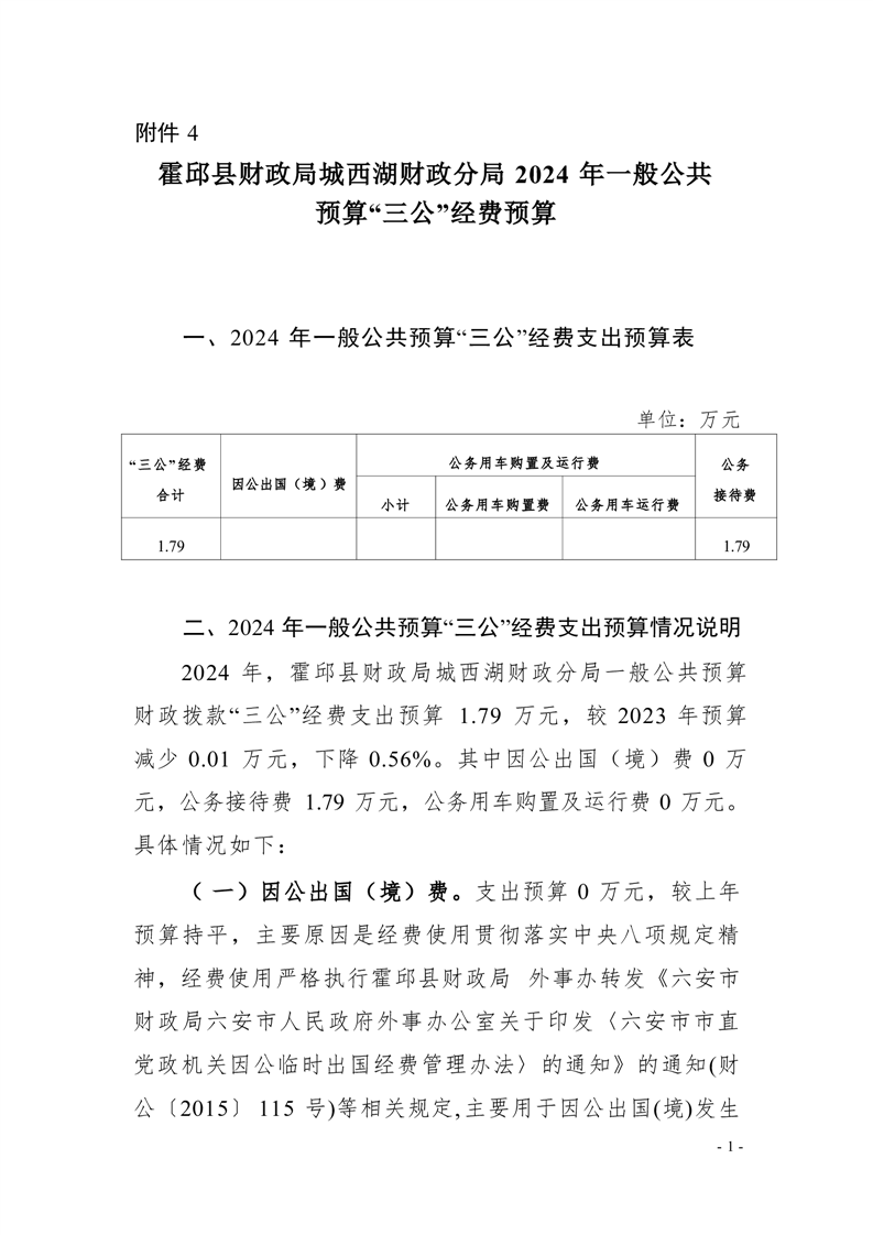 霍邱县财政局城西湖财政分局2024年单位一般公共预算安排“三公”经费情况公开.pdf