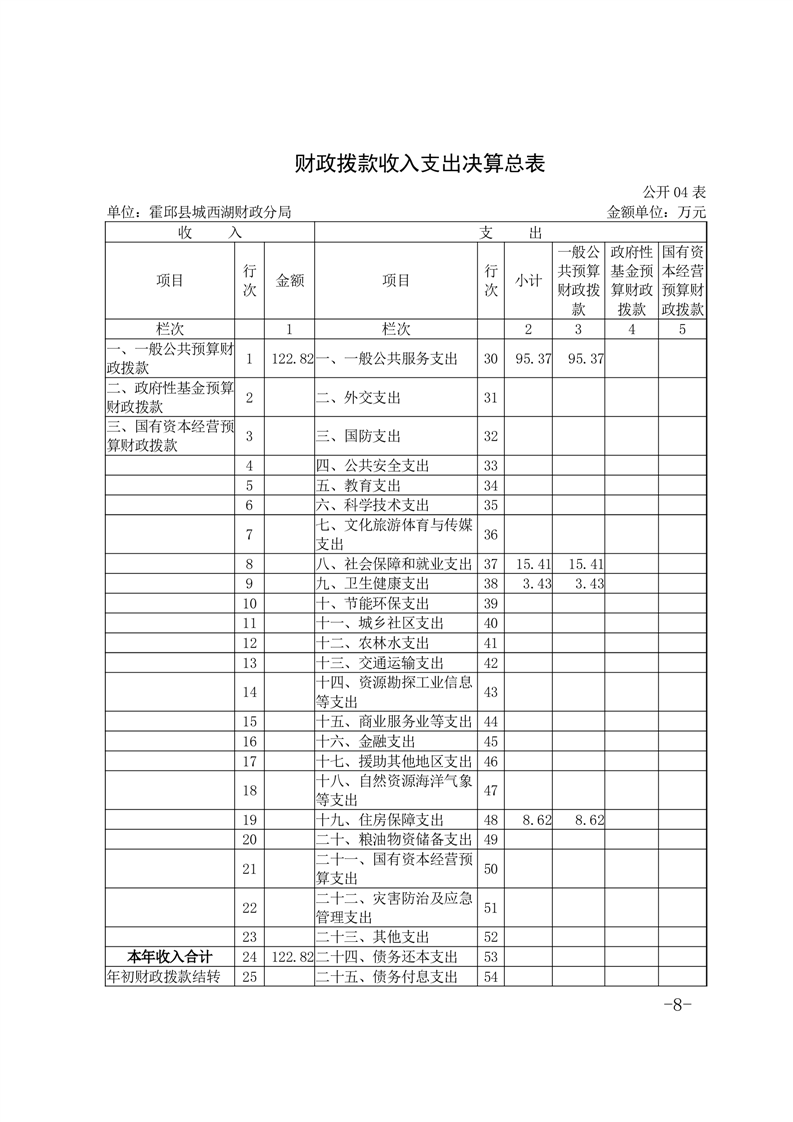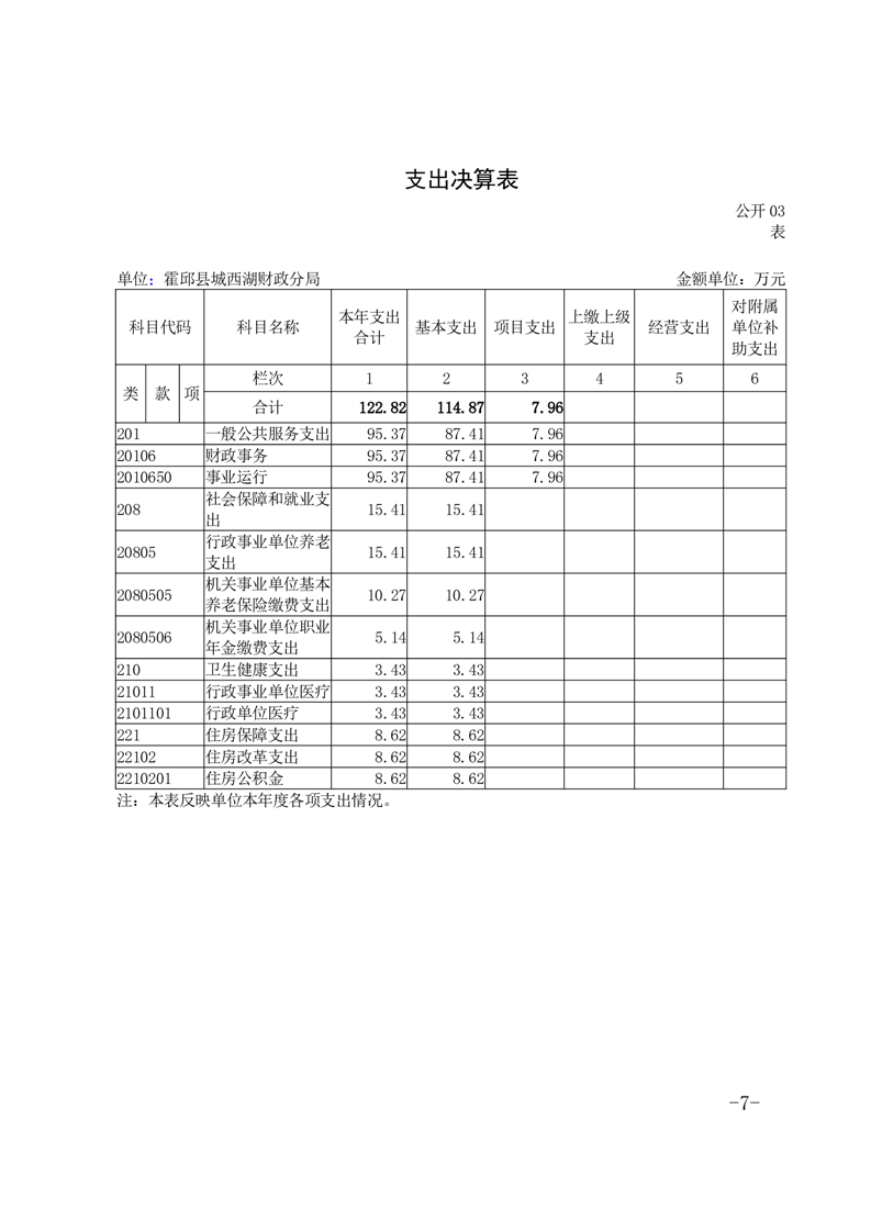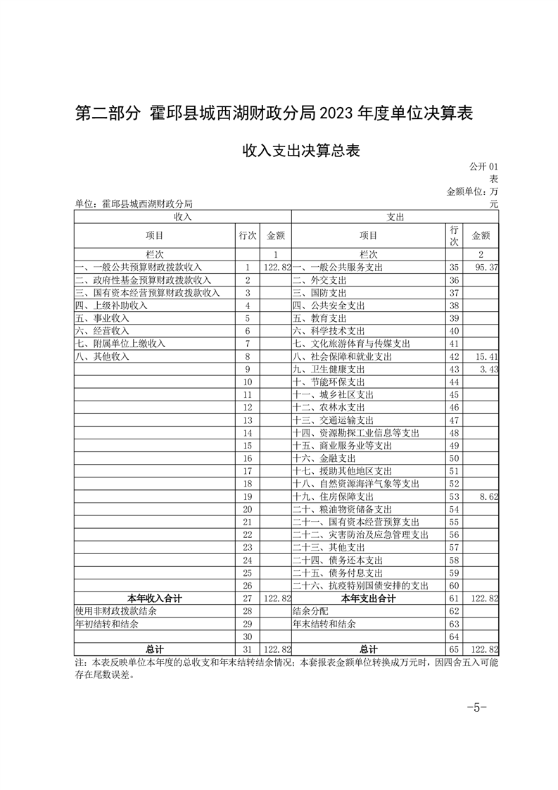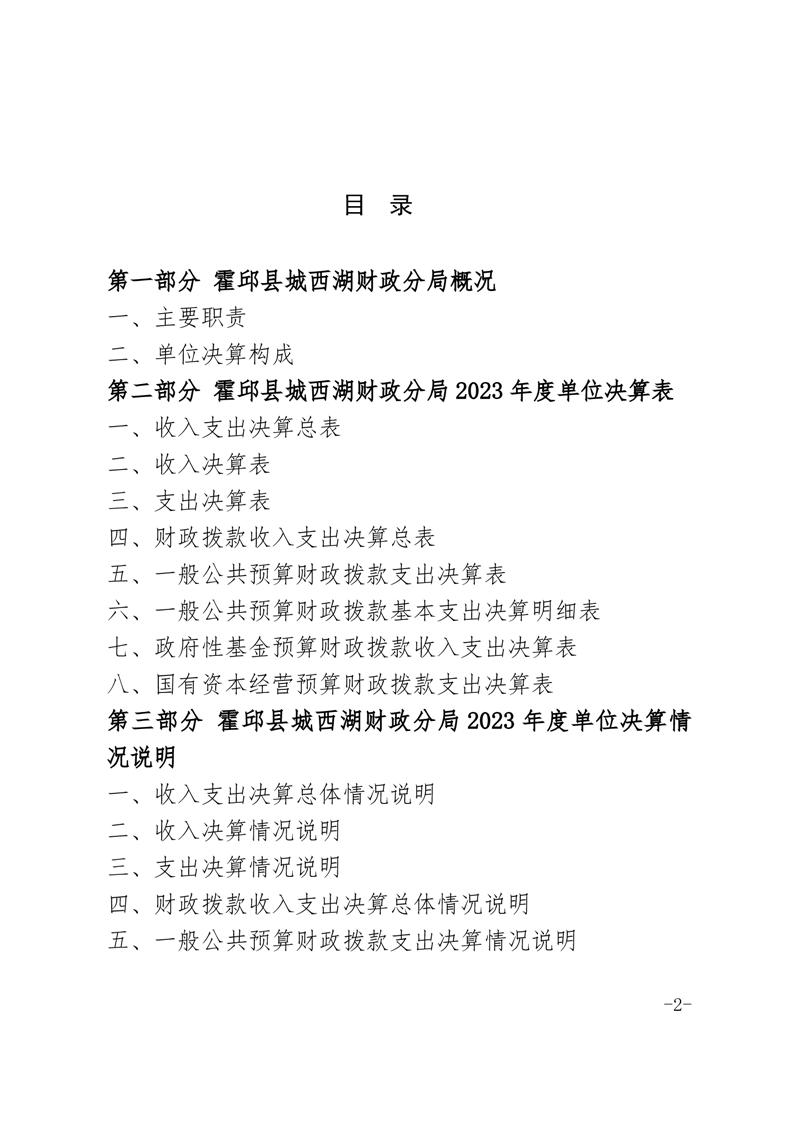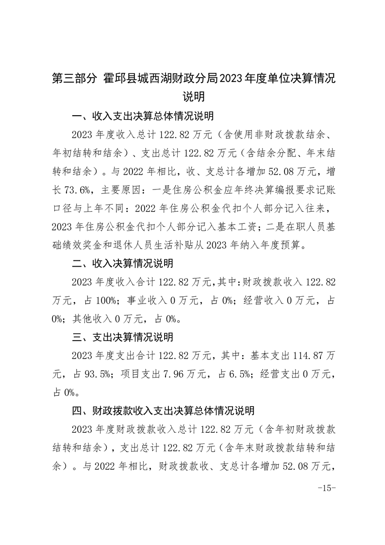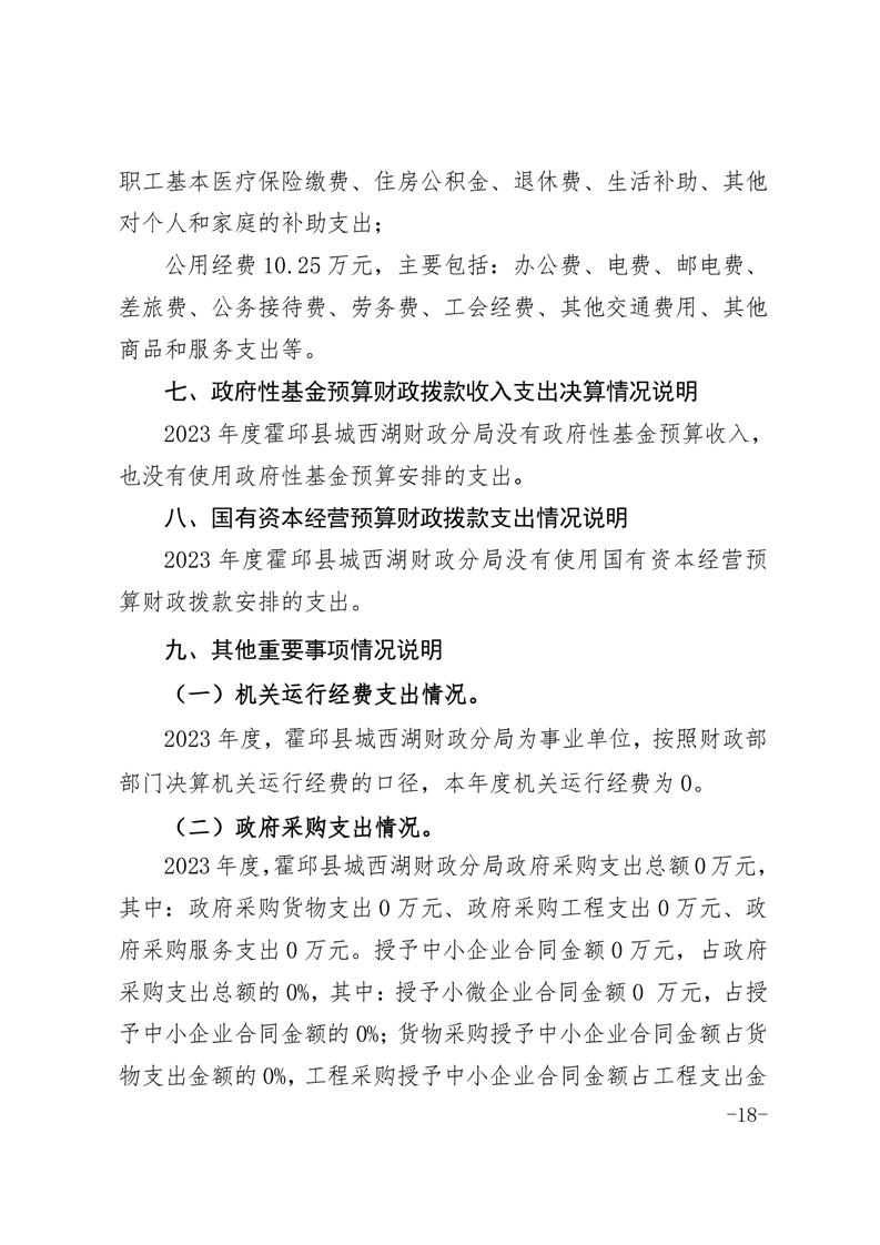 霍邱县财政局城西湖财政分局2023年度单位决算