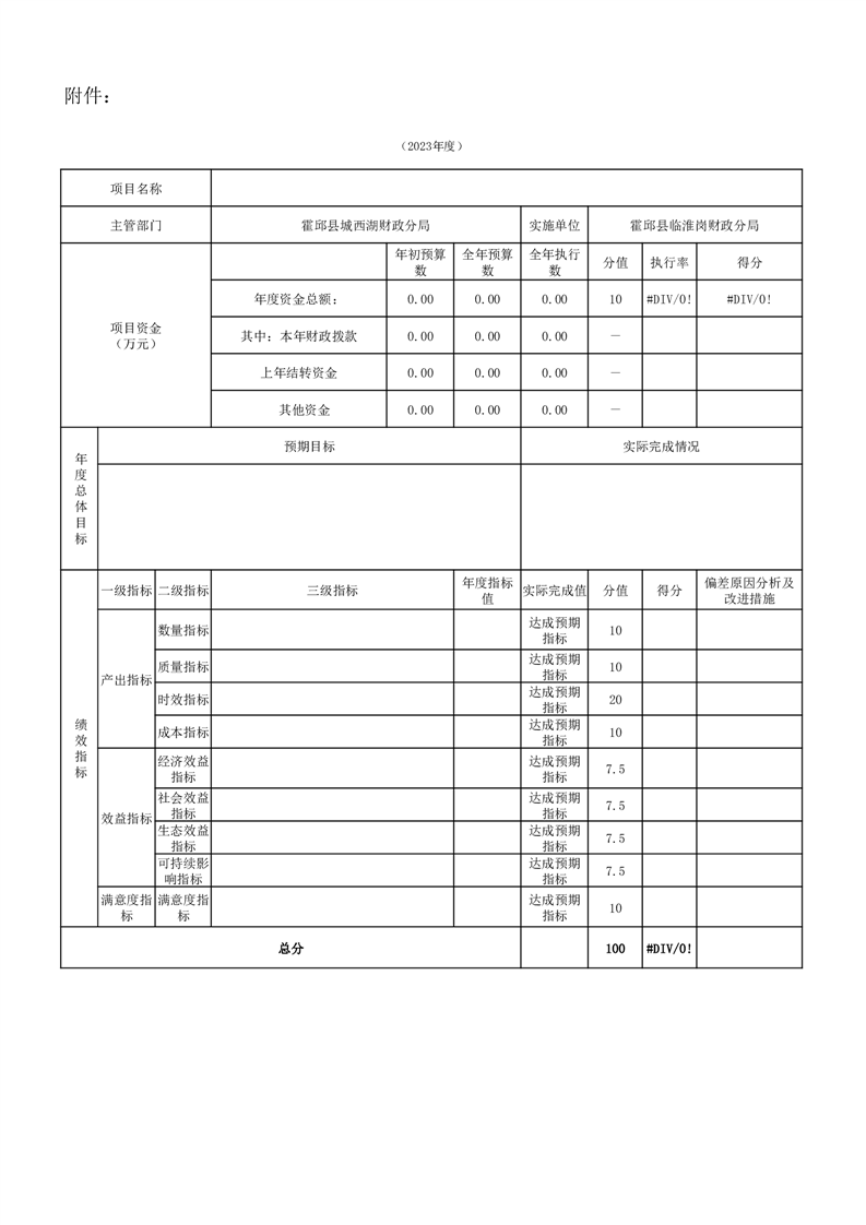 霍邱县城西湖财政分局2023年度项目支出绩效自评清单