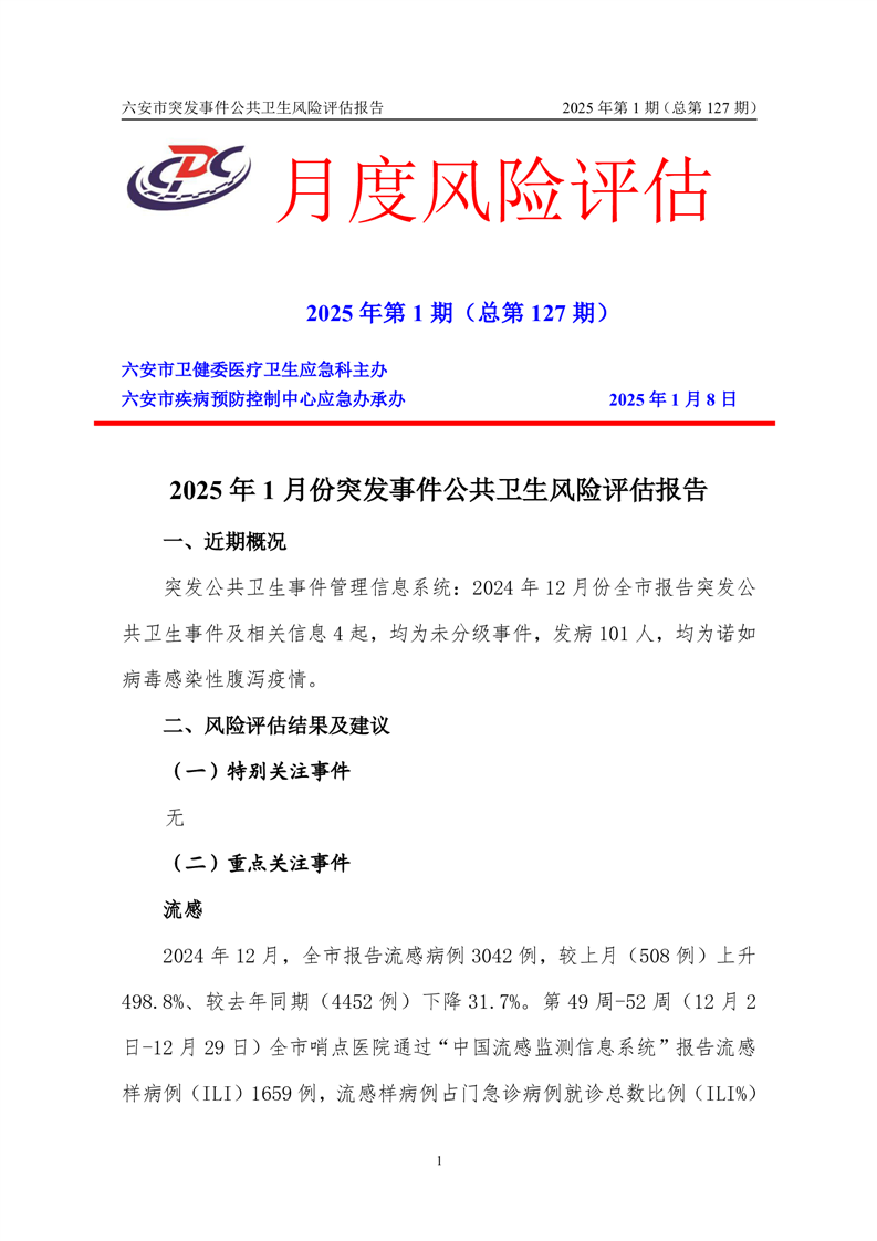 【预警信息】2025年1月份六安市突发公共卫生事件预警信息及对策建议