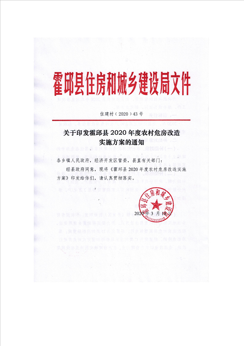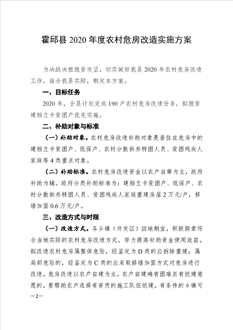 【管理办法】关于印发霍邱县农村危房改造实施方案的通知
