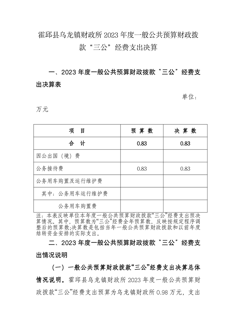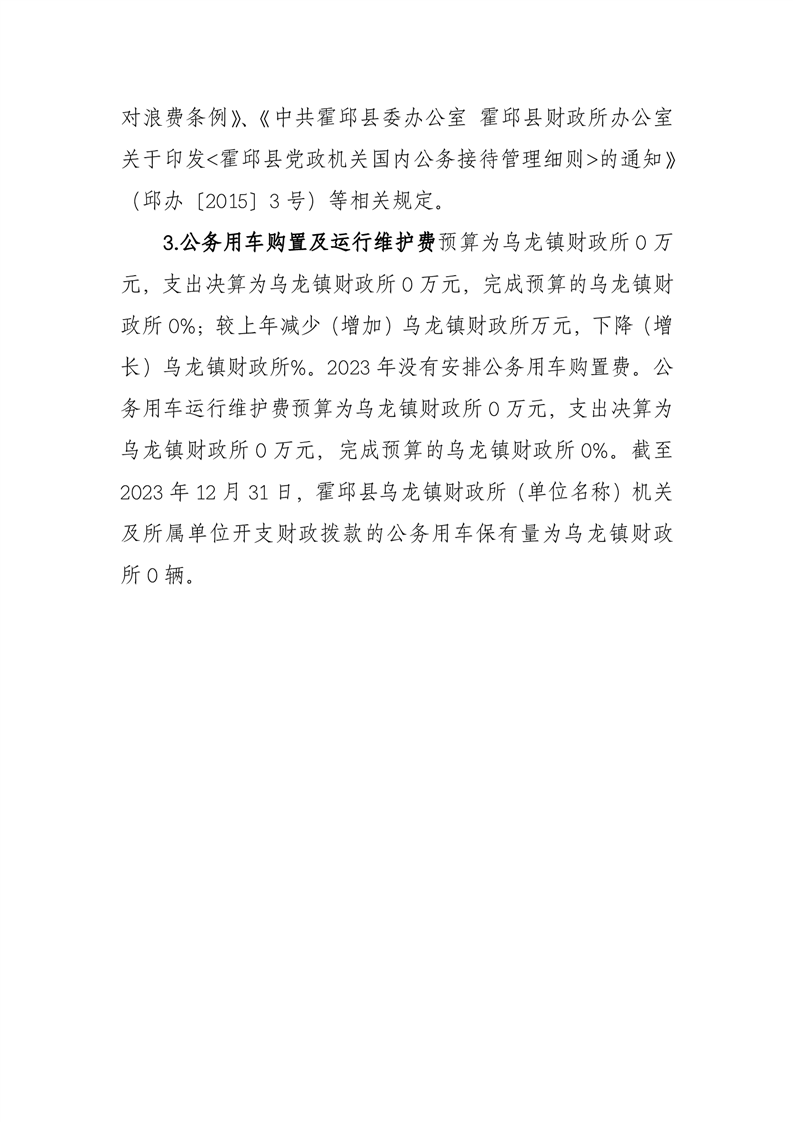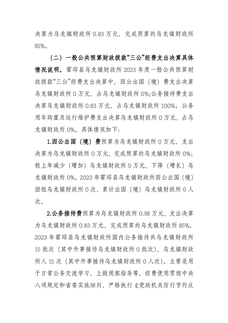 霍邱县乌龙镇财政所2023年一般公共预算财政拨款“三公”经费支出决算
