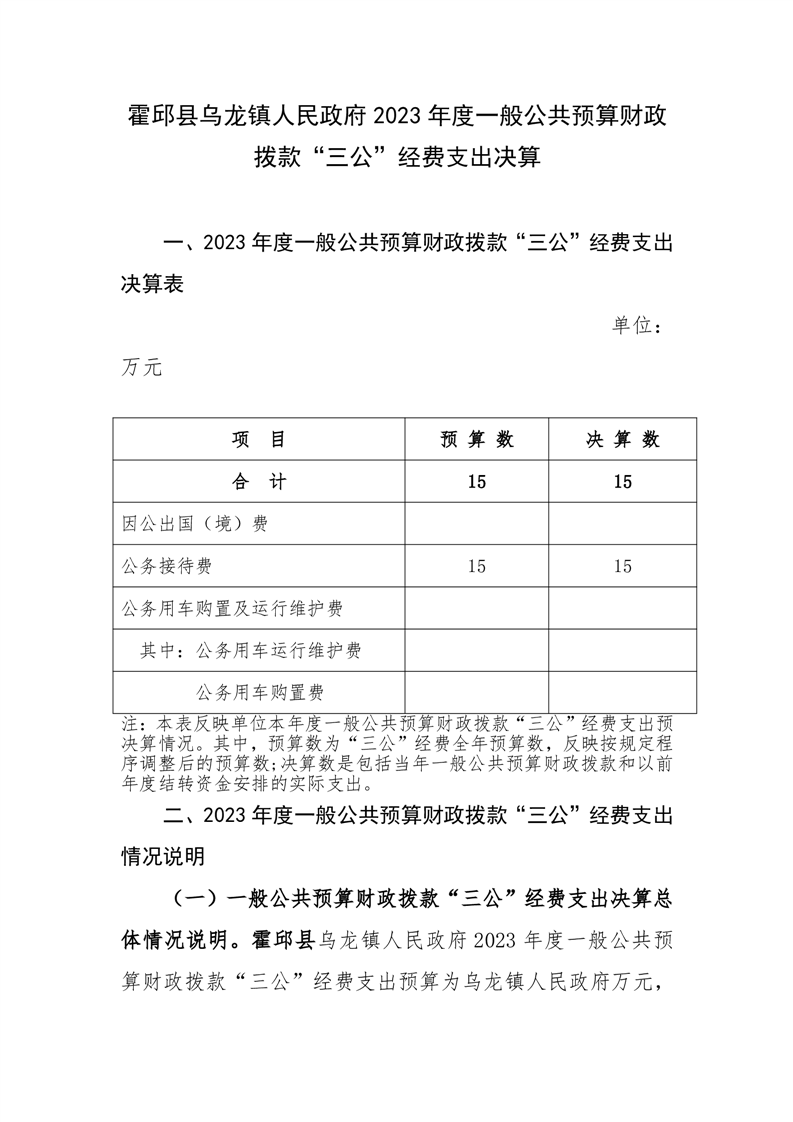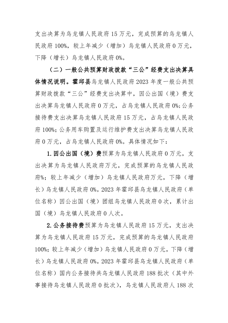 霍邱县乌龙镇人民政府2023年一般公共预算财政拨款“三公”经费支出决算