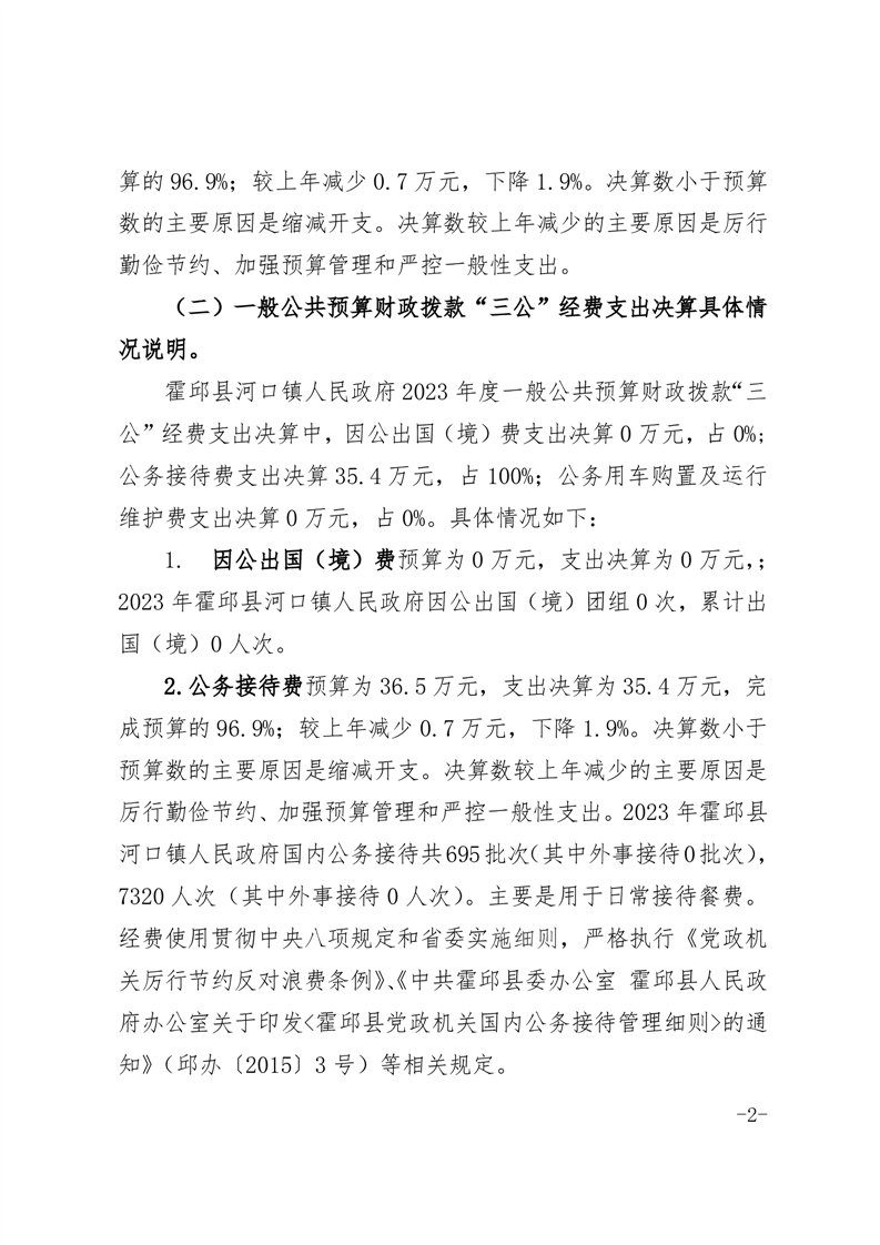 霍邱县河口镇人民政府2023年度一般公共预算财政拨款“三公”经费支出决算