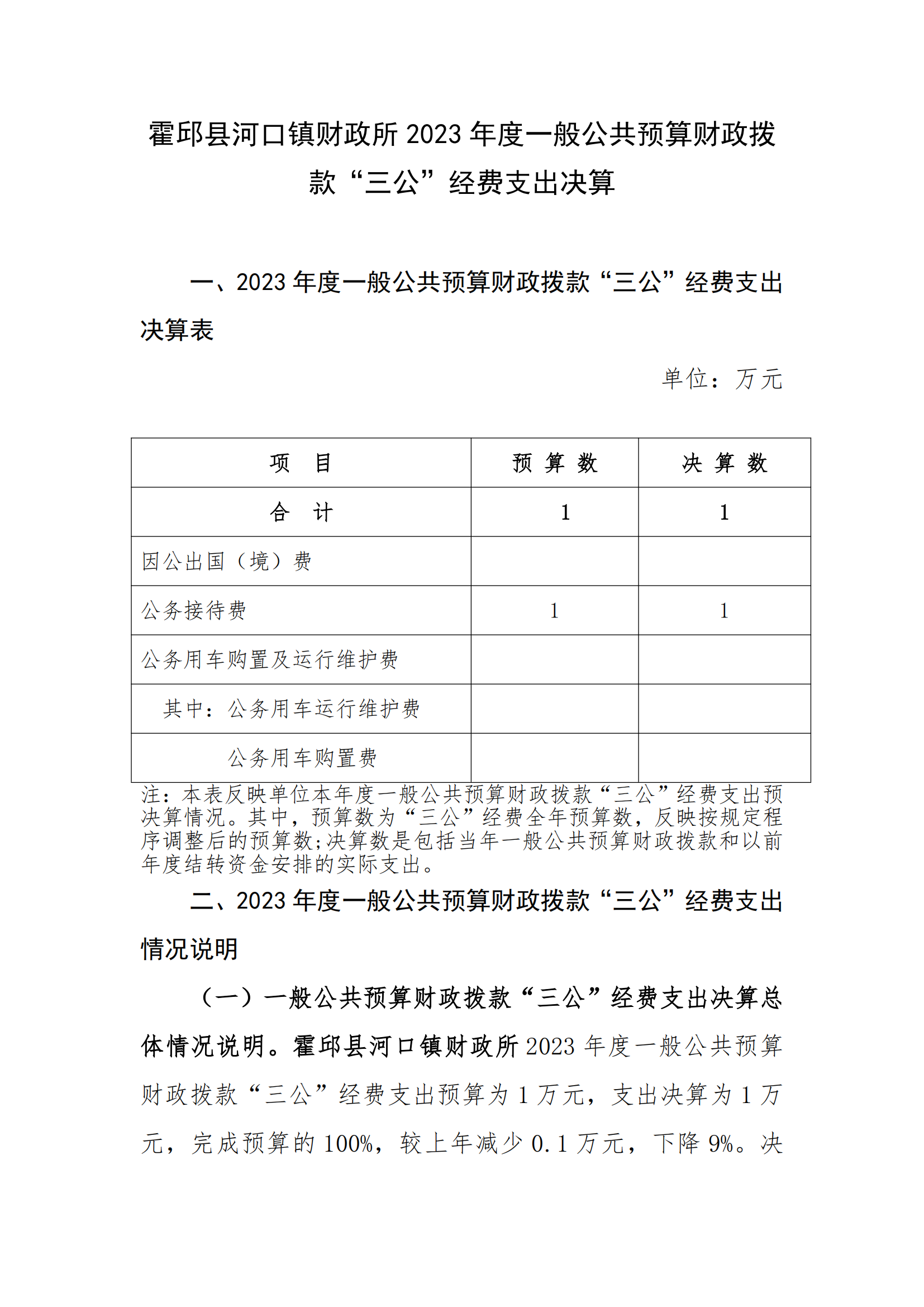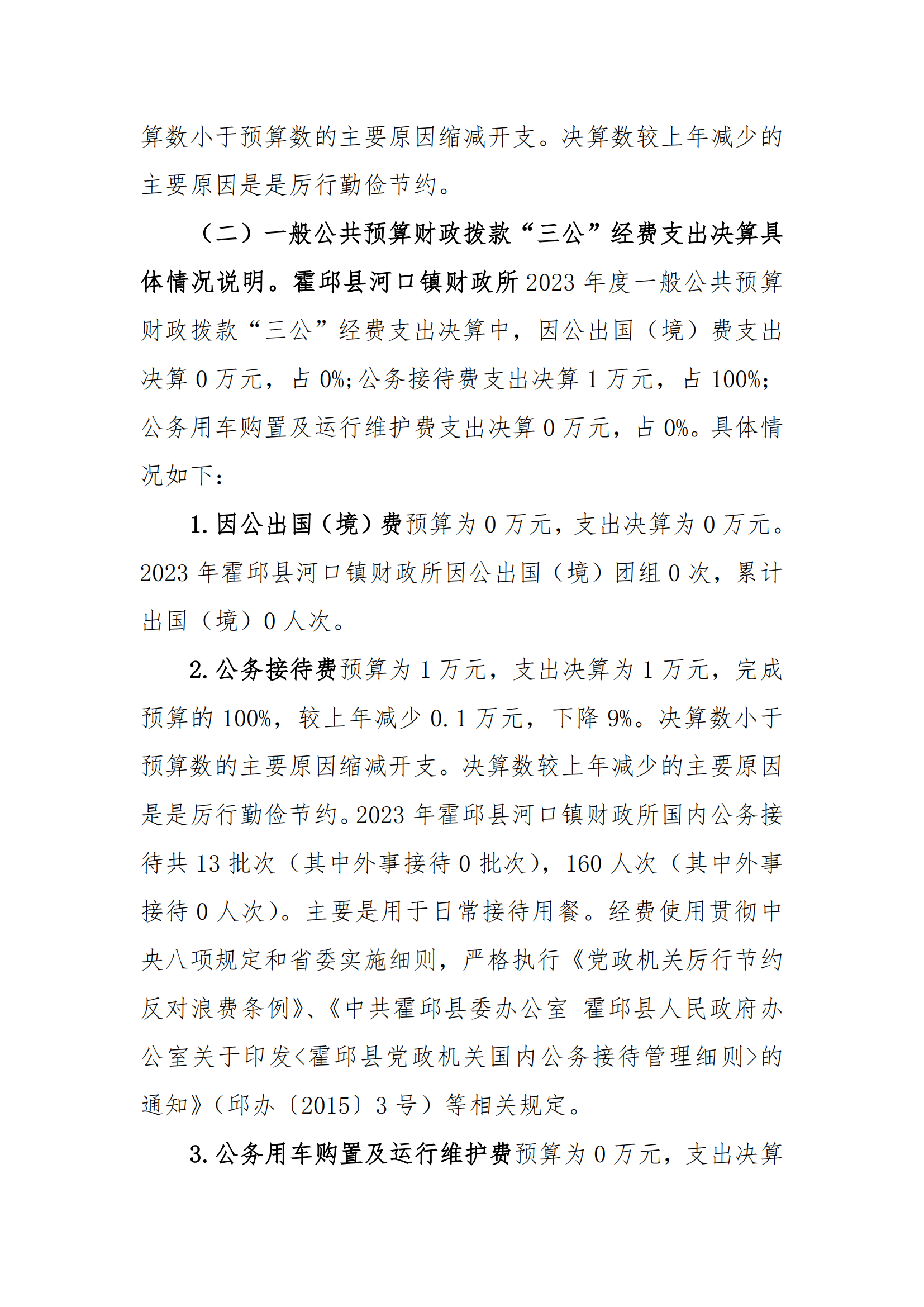 霍邱县河口镇财政所2023年度一般公共预算财政拨款“三公”经费支出决算