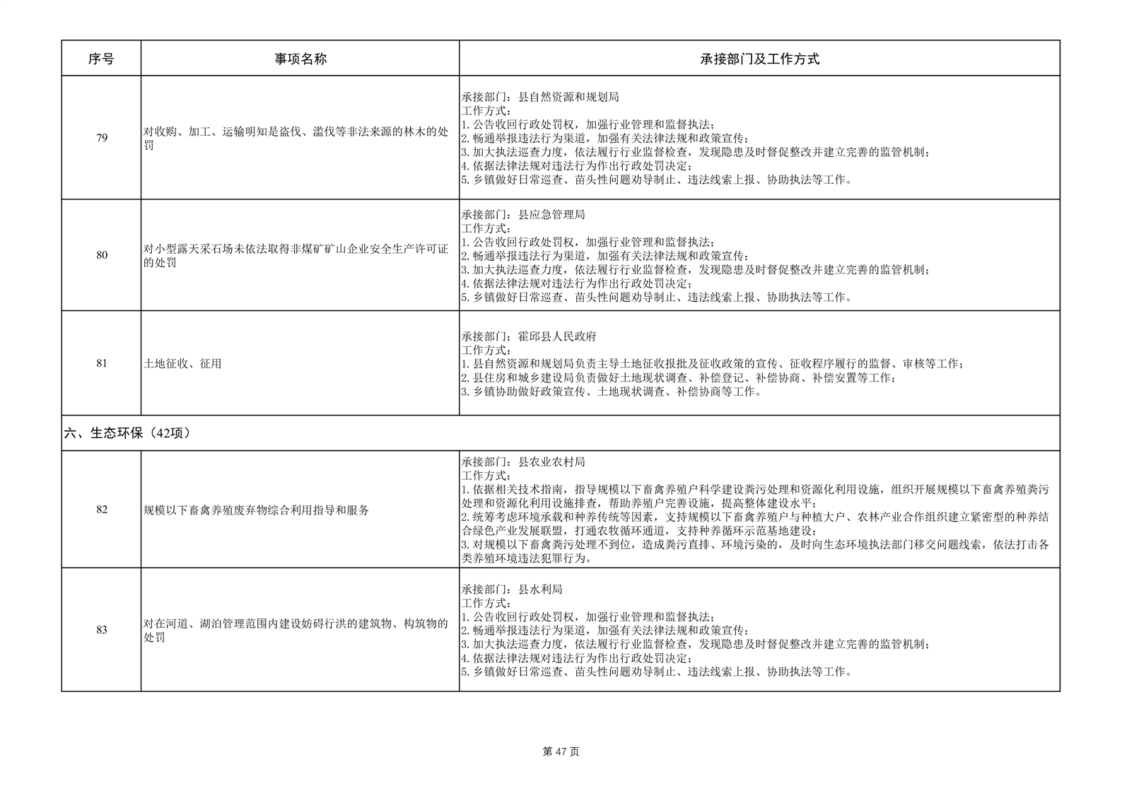 安徽省六安市霍邱县河口镇履行职责事项清单