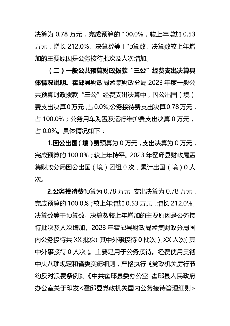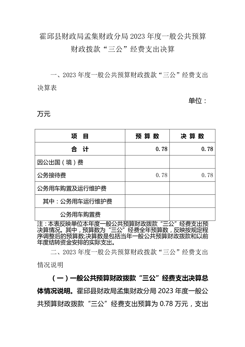霍邱县财政局孟集财政分局 2023 年度一般公共预算财政拨款“三公”经费支出决算.pdf