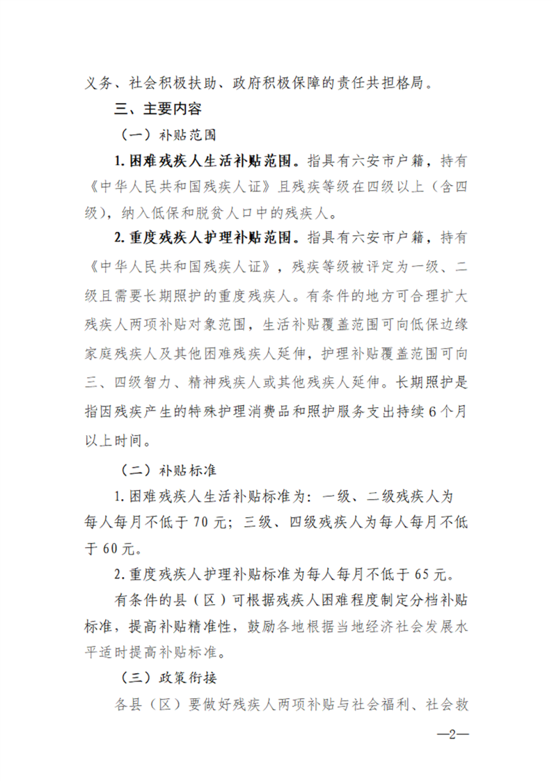 六安市民政局 六安市财政局 六安市残联关于印发《六安市困难残疾人生活和重度残疾人护理补贴实施方案》的通知