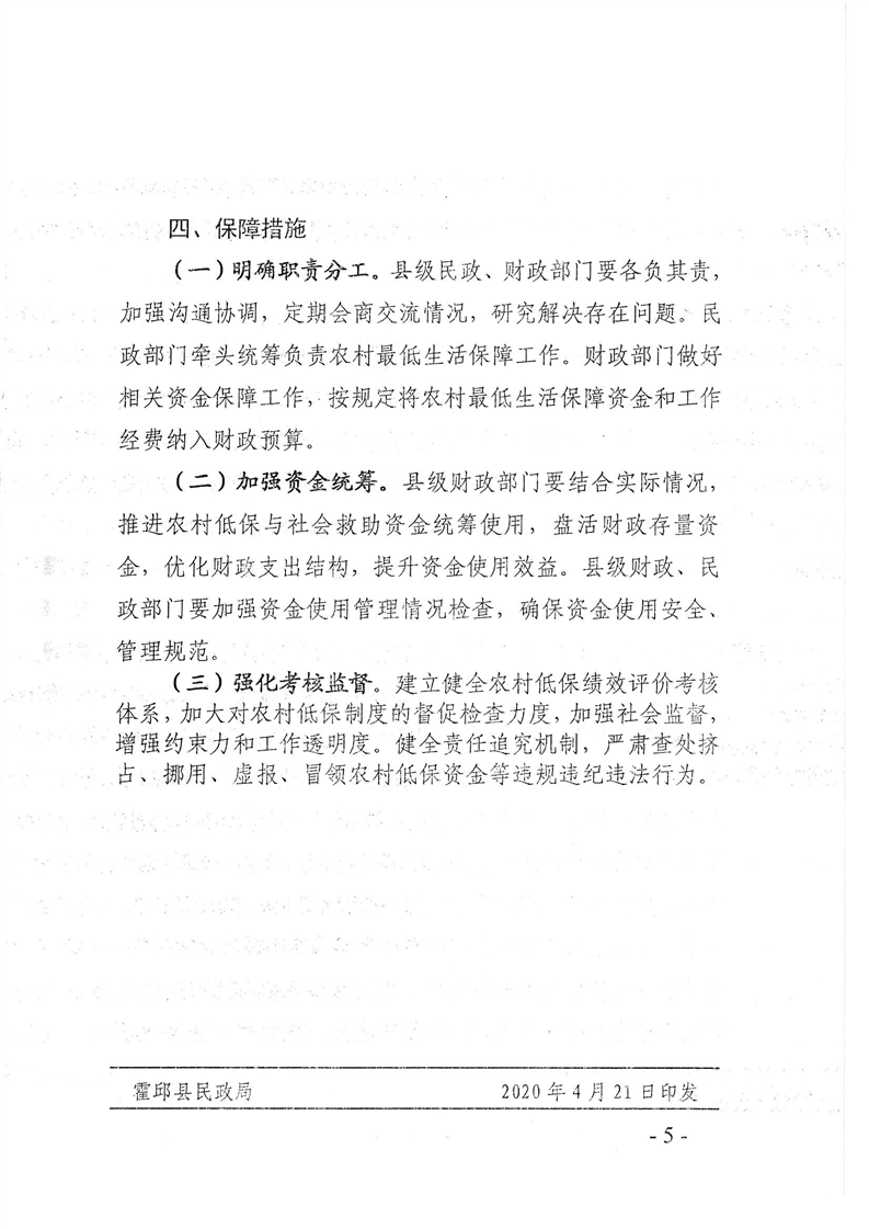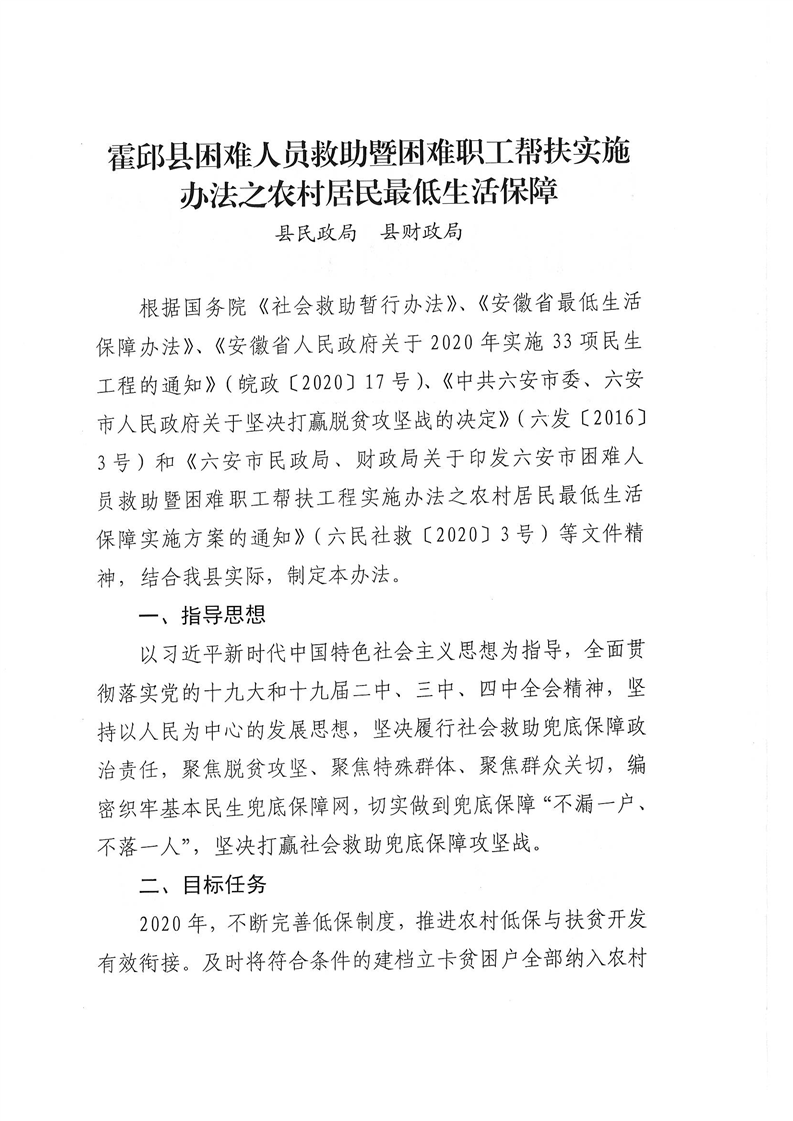 【管理办法】霍邱县农村居民最低生活保障实施办法