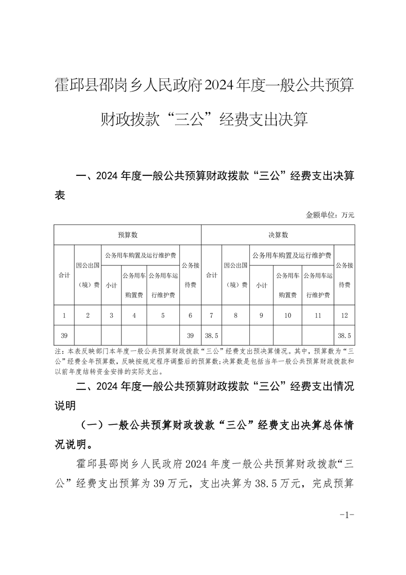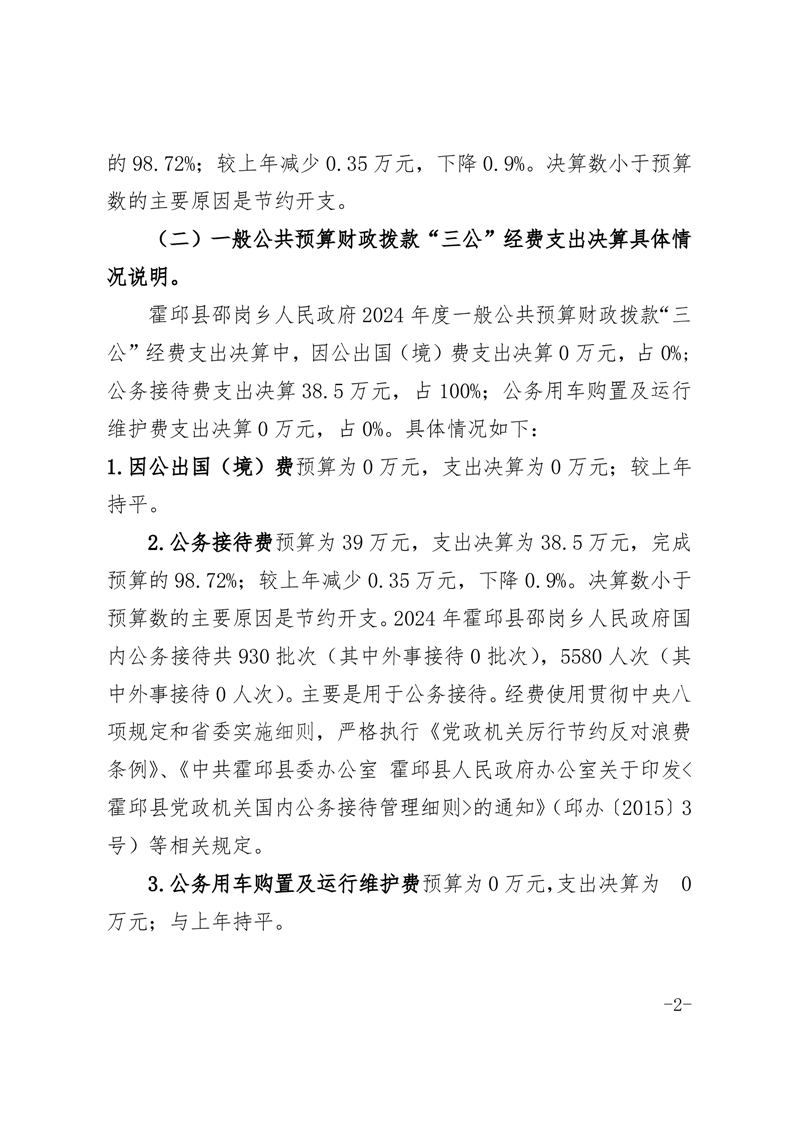 霍邱县邵岗乡人民政府2024年度一般公共预算财政拨款“三公”经费支出决算