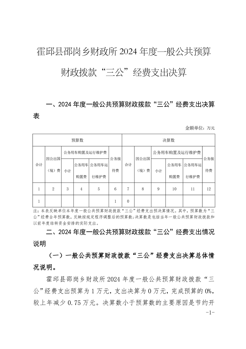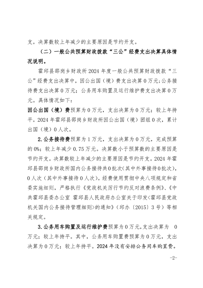 霍邱县邵岗乡财政所2024年度一般公共预算财政拨款“三公”经费支出决算
