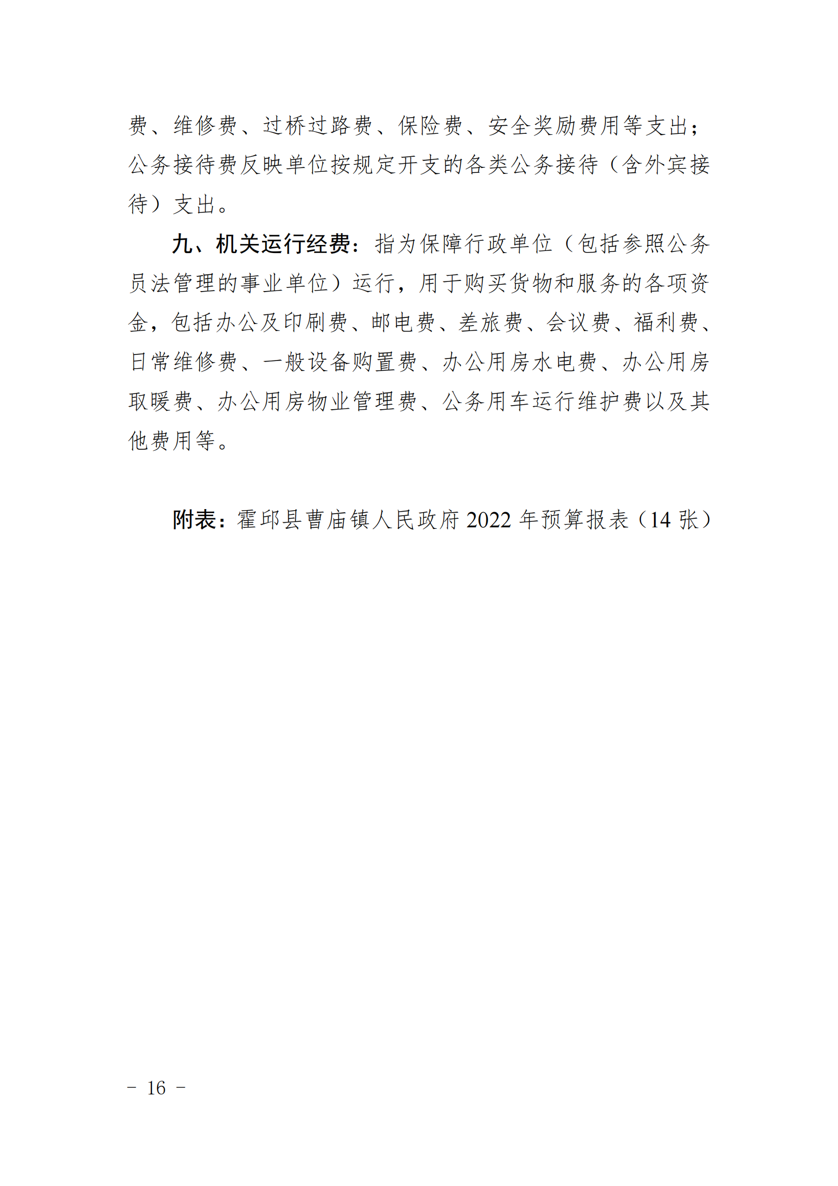 霍邱县曹庙镇人民政府2022年部门预算公开