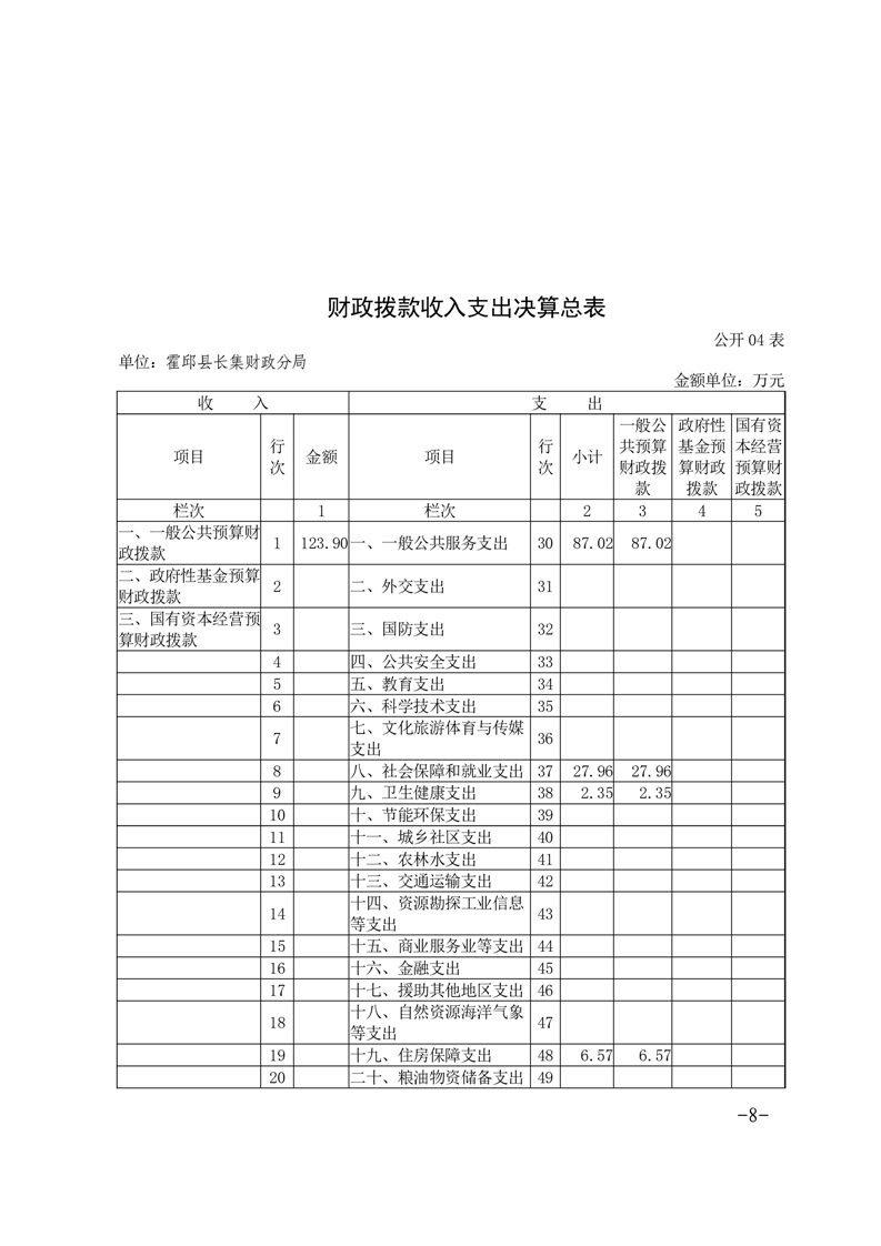 霍邱县长集镇财政分局2023年单位决算公开