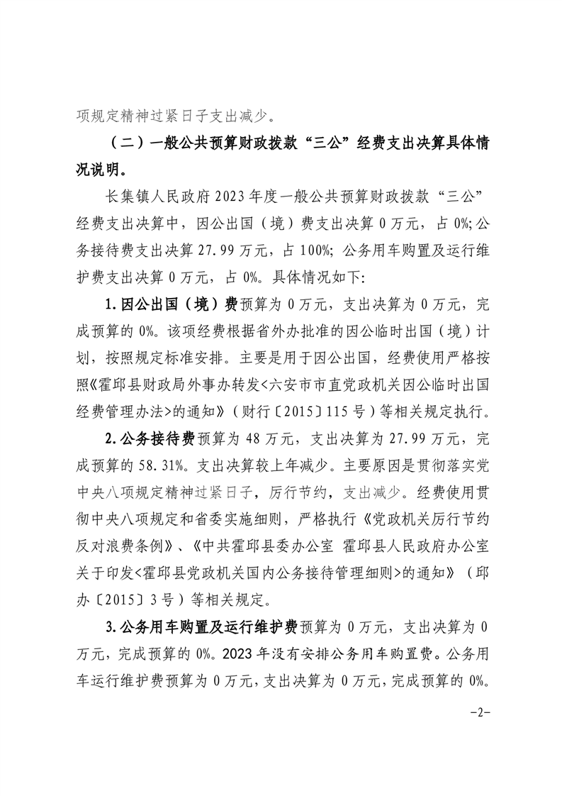长集镇人民政府2023年度一般公共预算财政拨款“三公”经费支出决算