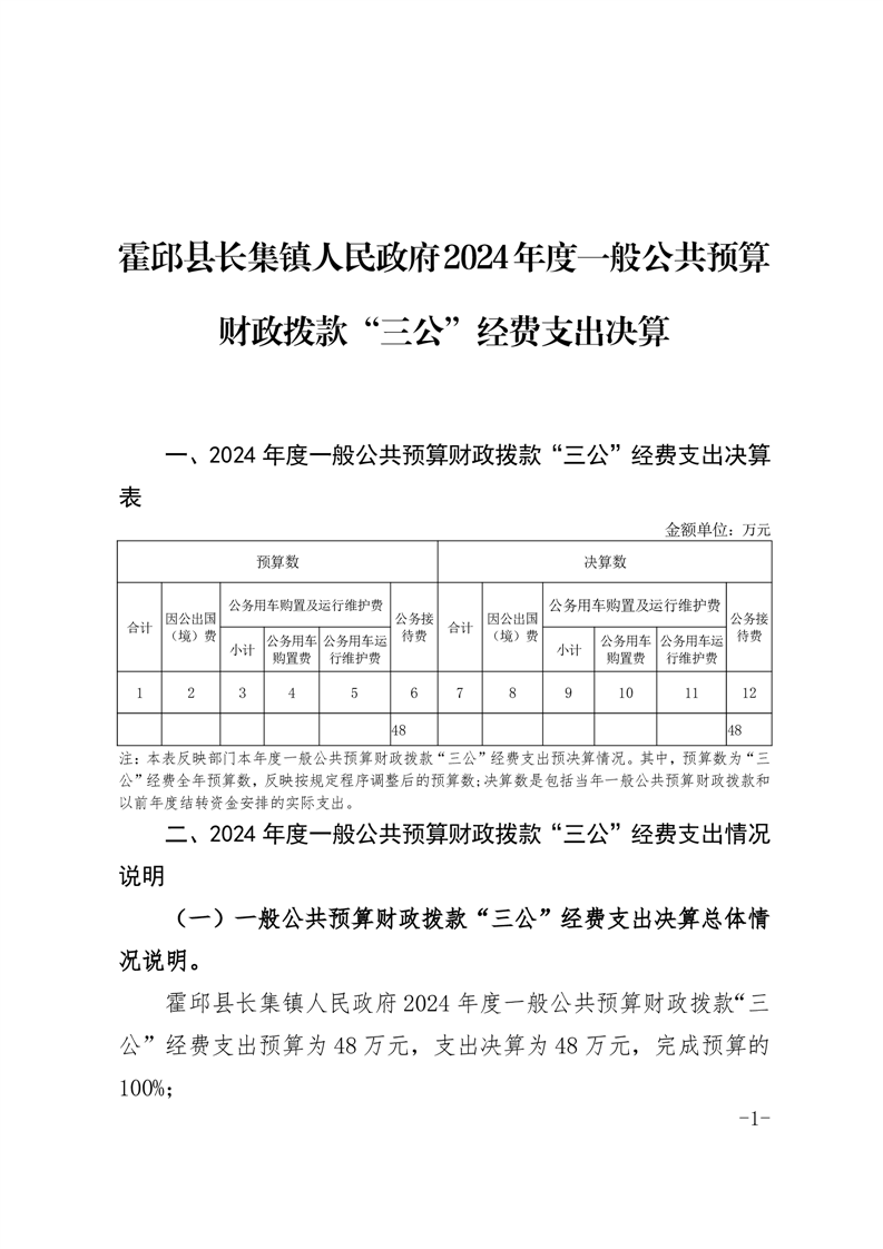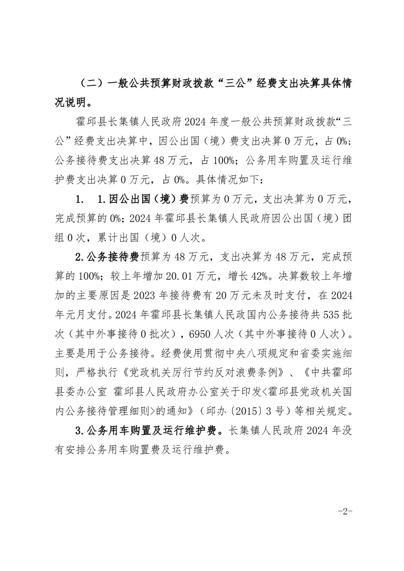 霍邱县长集镇人民政府2024年度一般公共预算财政拨款“三公”经费支出决算