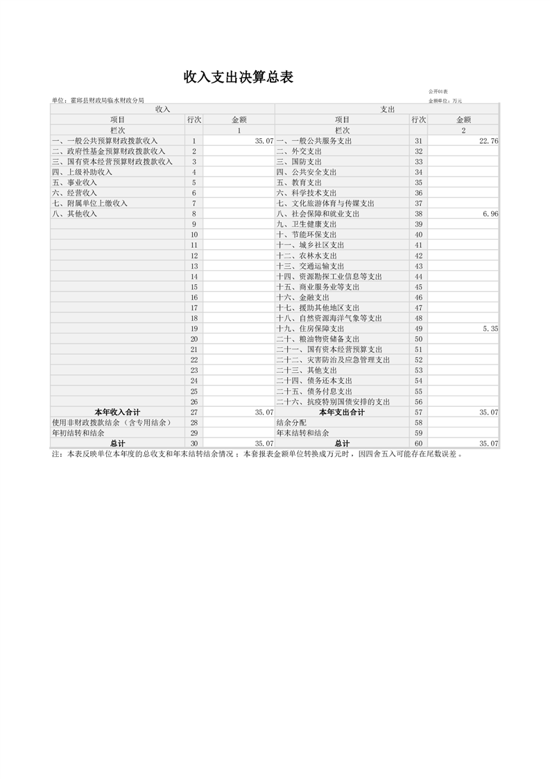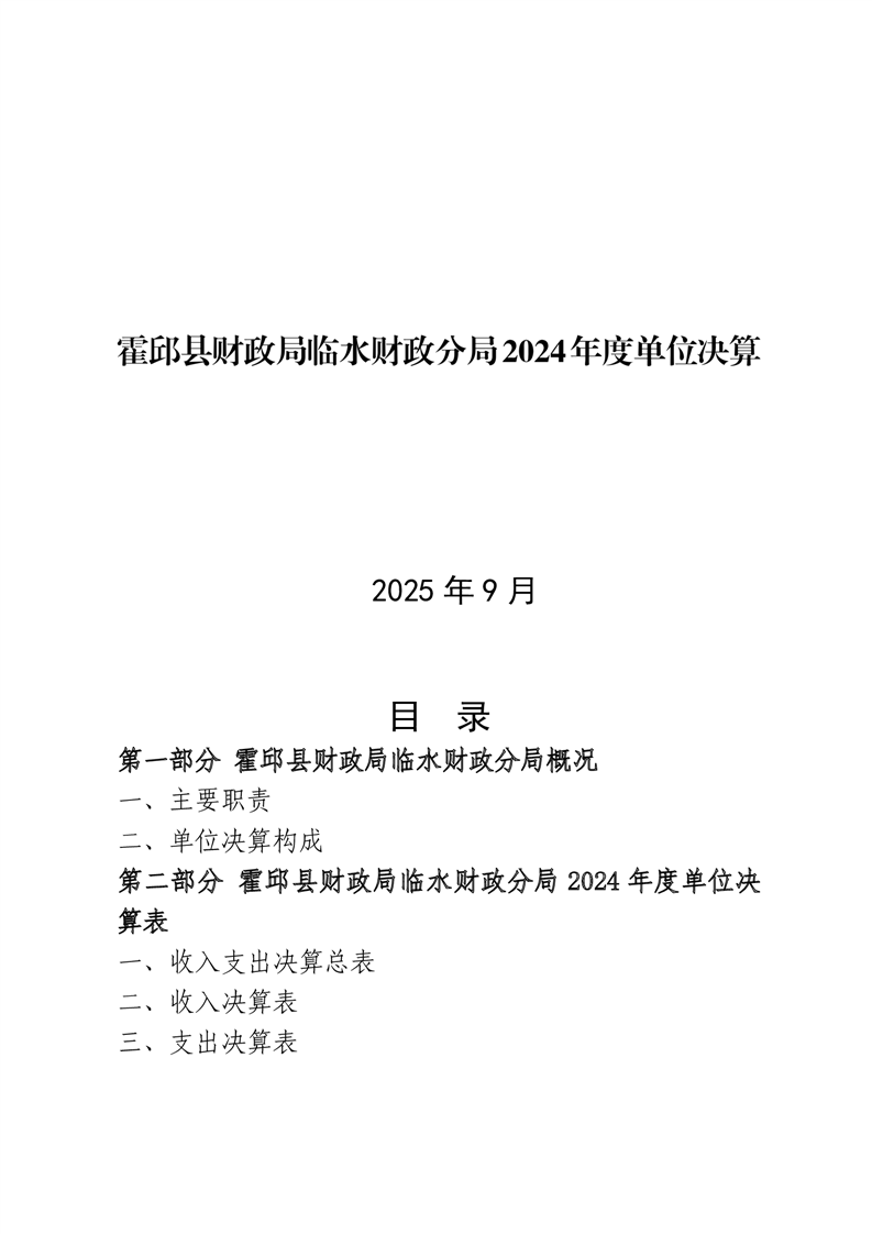 【财政决算】霍邱县财政局临水财政分局2024年度单位决算