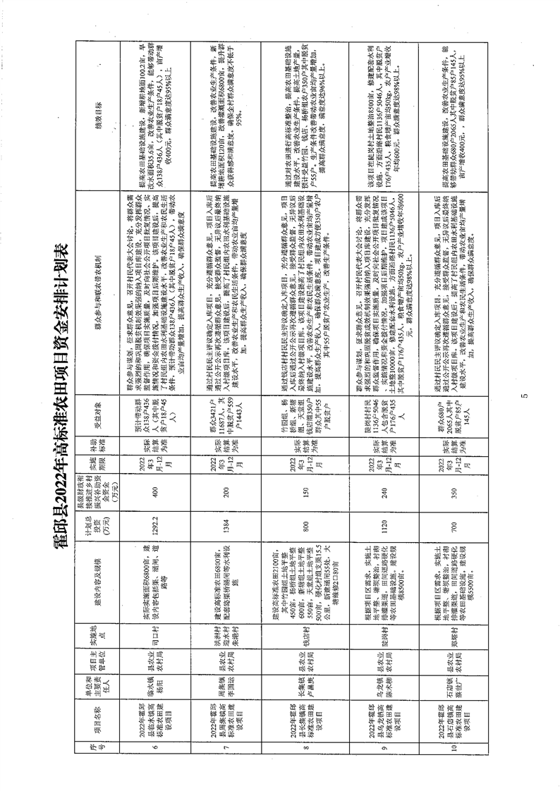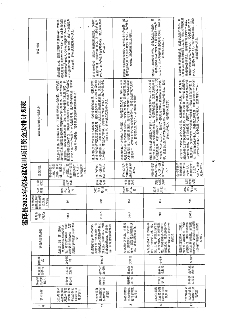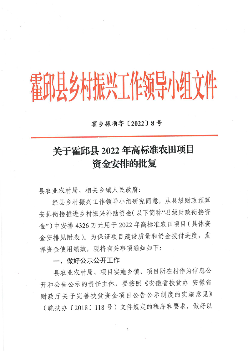 关于霍邱县2022年高标准农田项目资金安排的批复(含临水镇)
