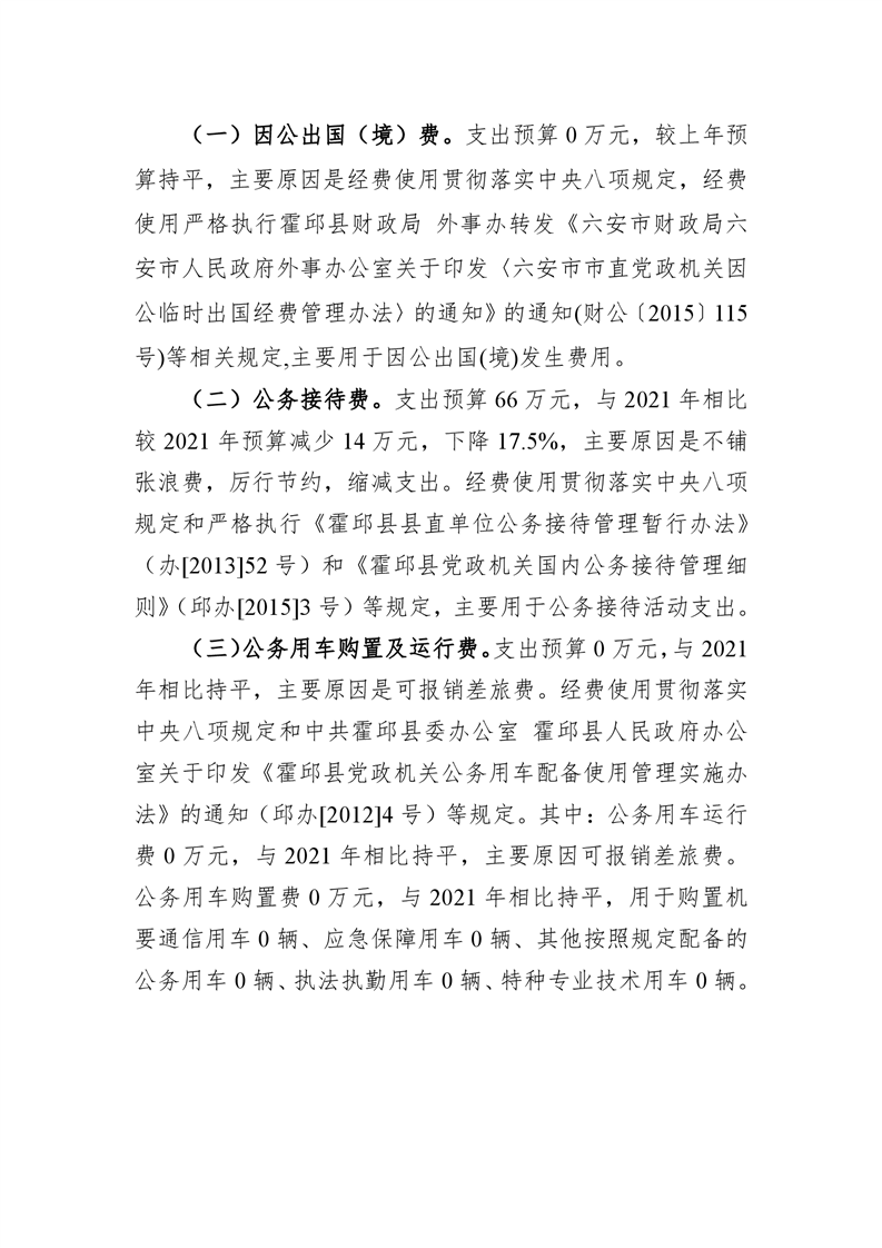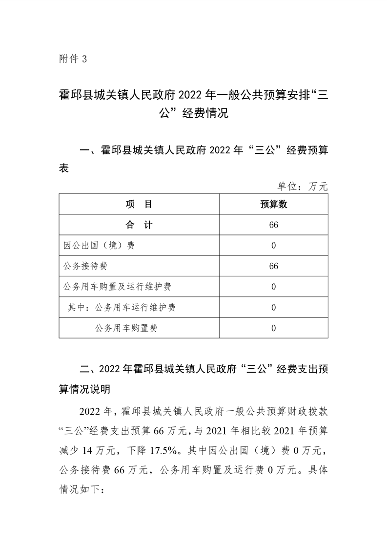 霍邱县城关镇人民政府部门2022年一般公共预算安排“三公”经费情况