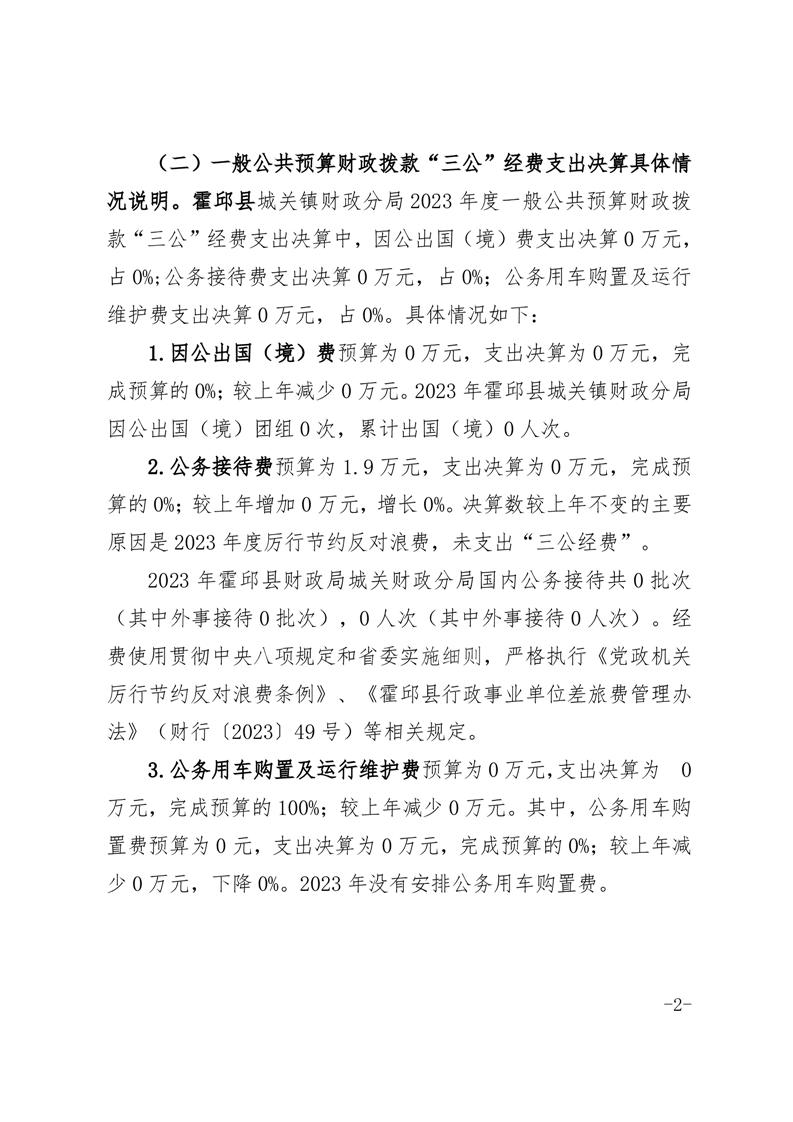霍邱县城关镇财政分局2023年度一般公共预算财政拨款“三公”经费支出决算公开