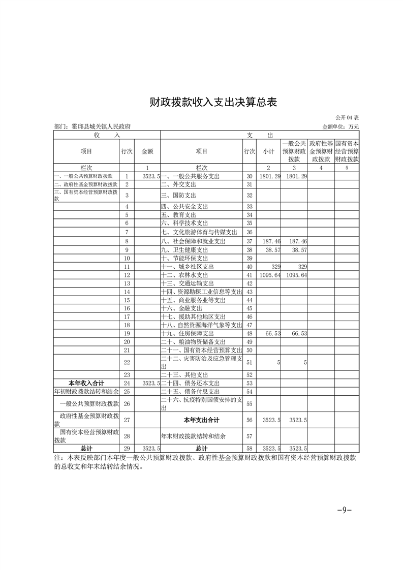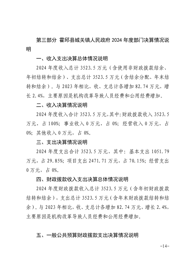 霍邱县城关镇人民政府2024年决算公开