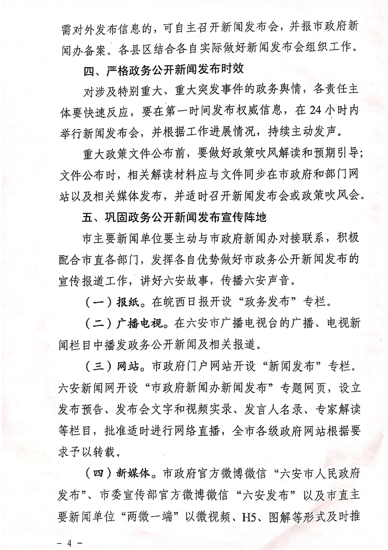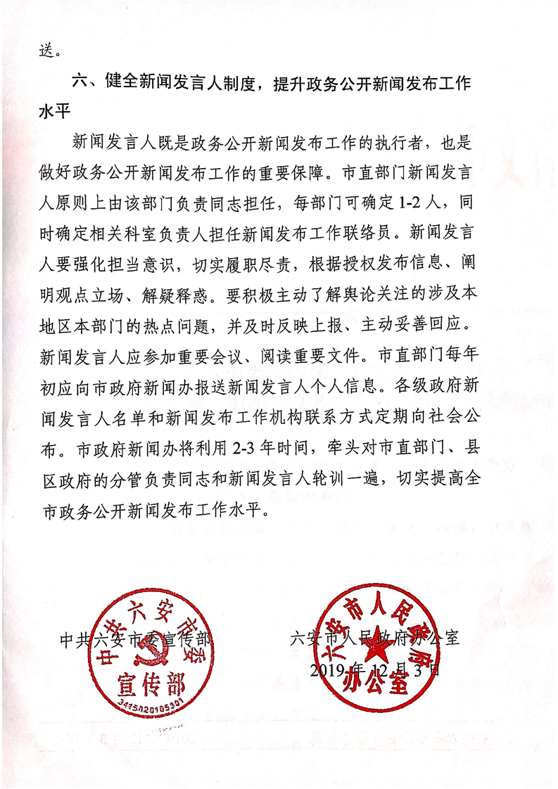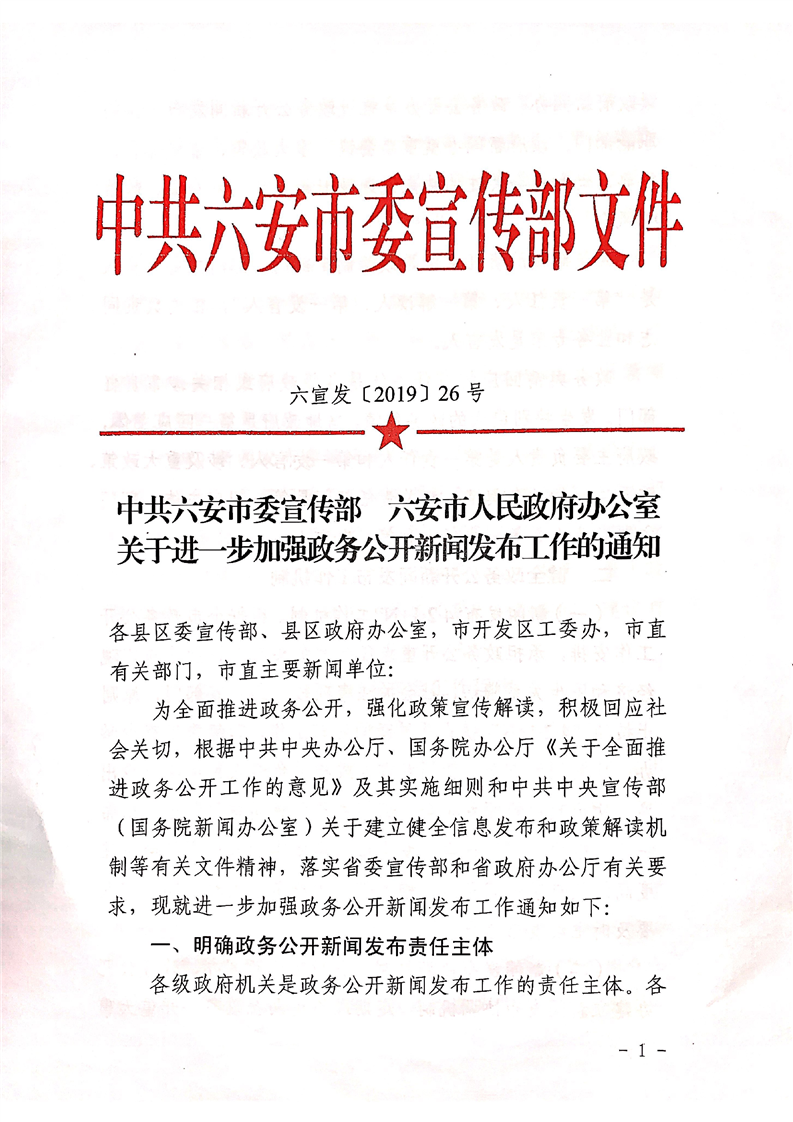 中共六安市委宣传部六安市人民政府办公室关于进一步加强政务公开新闻发布工作的通知