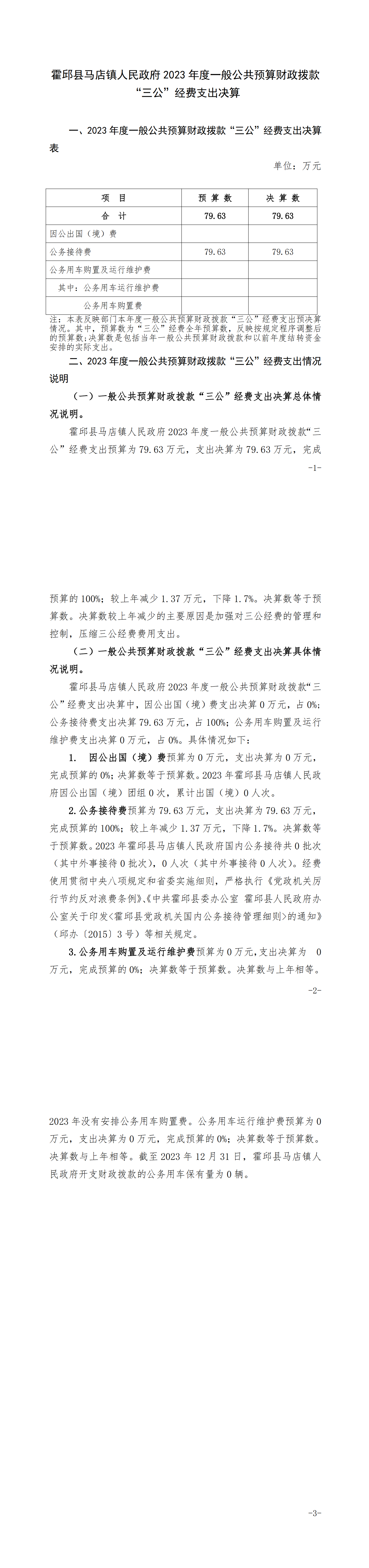 霍邱县马店镇人民政府2023年度一般公共预算财政拨款“三公”经费支出决算