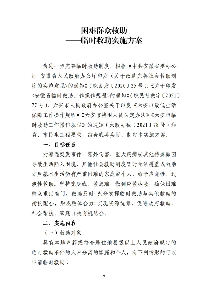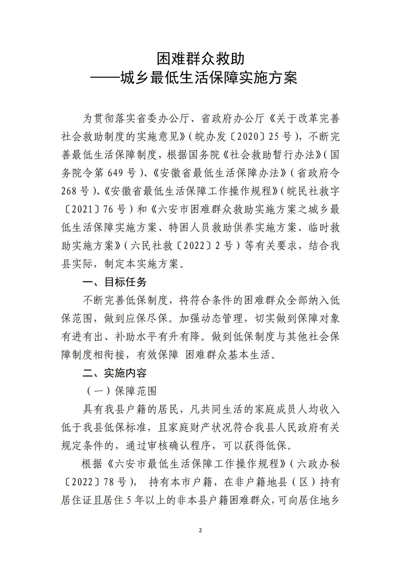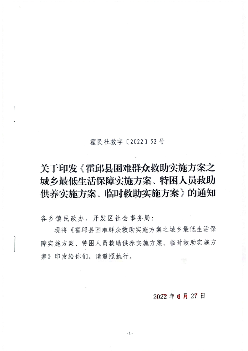 霍邱县困难群众救助实施方案之城乡最低生活保障实施方案、特困人员救助供养实施方案、临时救助实施方案