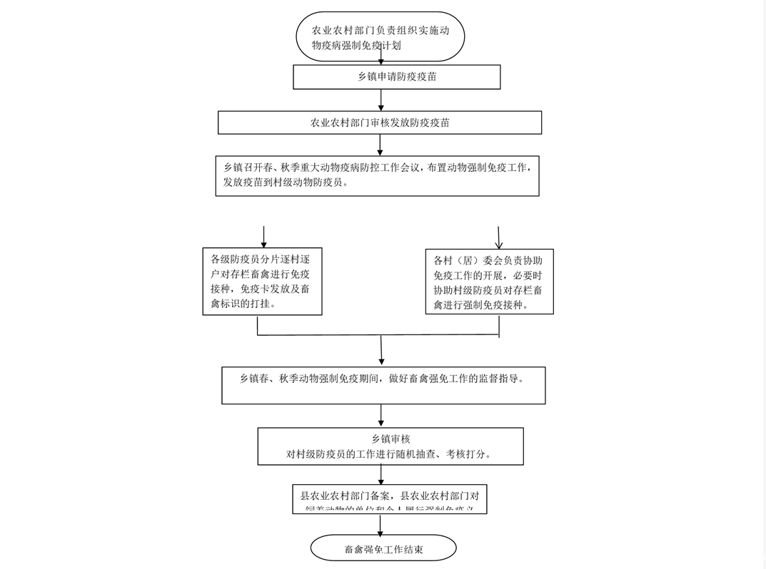霍邱县白莲乡组织开展动物疫病强制免疫实施流程图