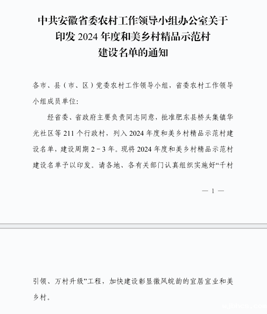 【示范点名单】中共安徽省委农村工作领导小组办公室关于印发2024年度和美乡村精品示范村建设名单的通知