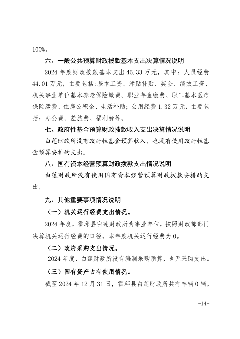 霍邱县白莲财政所2024年度单位决算