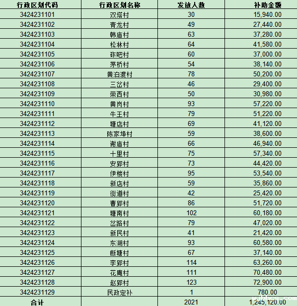 新店镇7月份农村居民最低生活保障资金清册汇总信息表