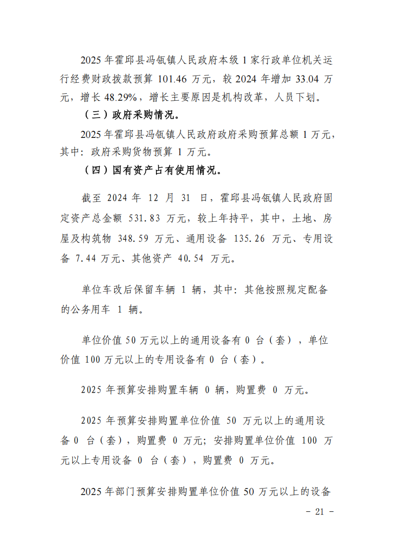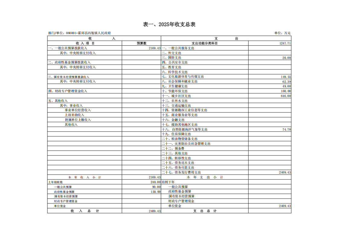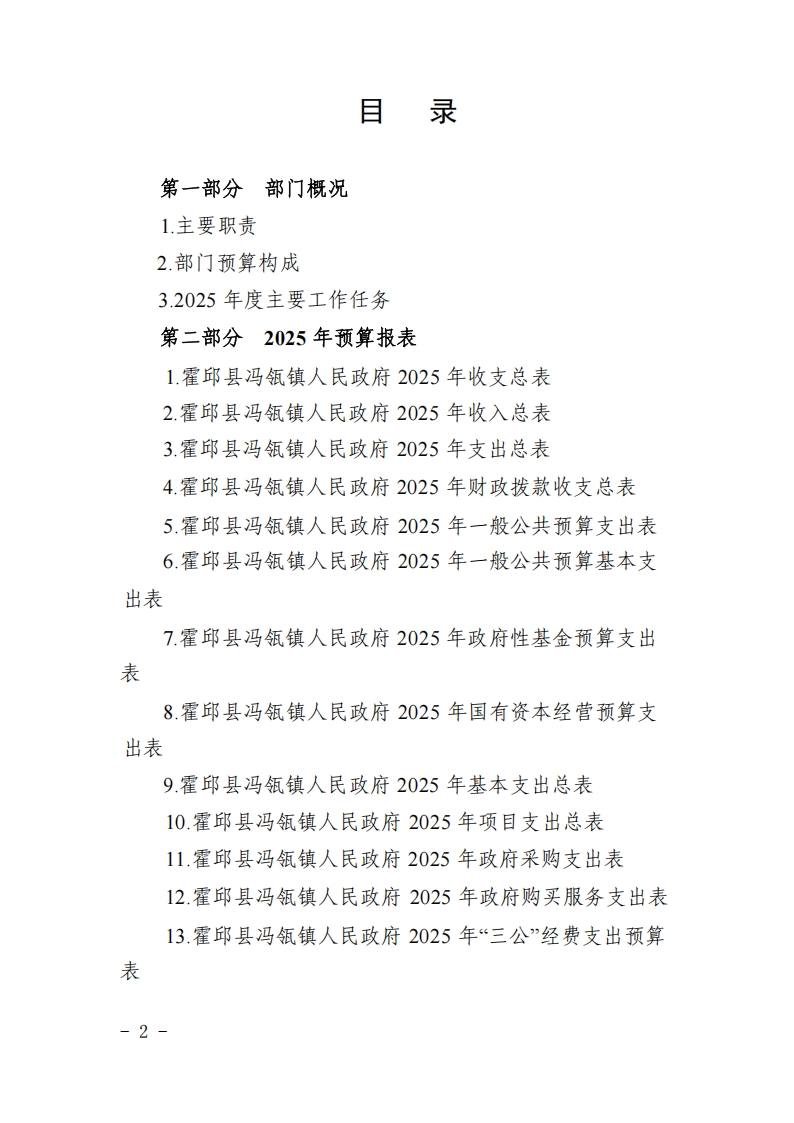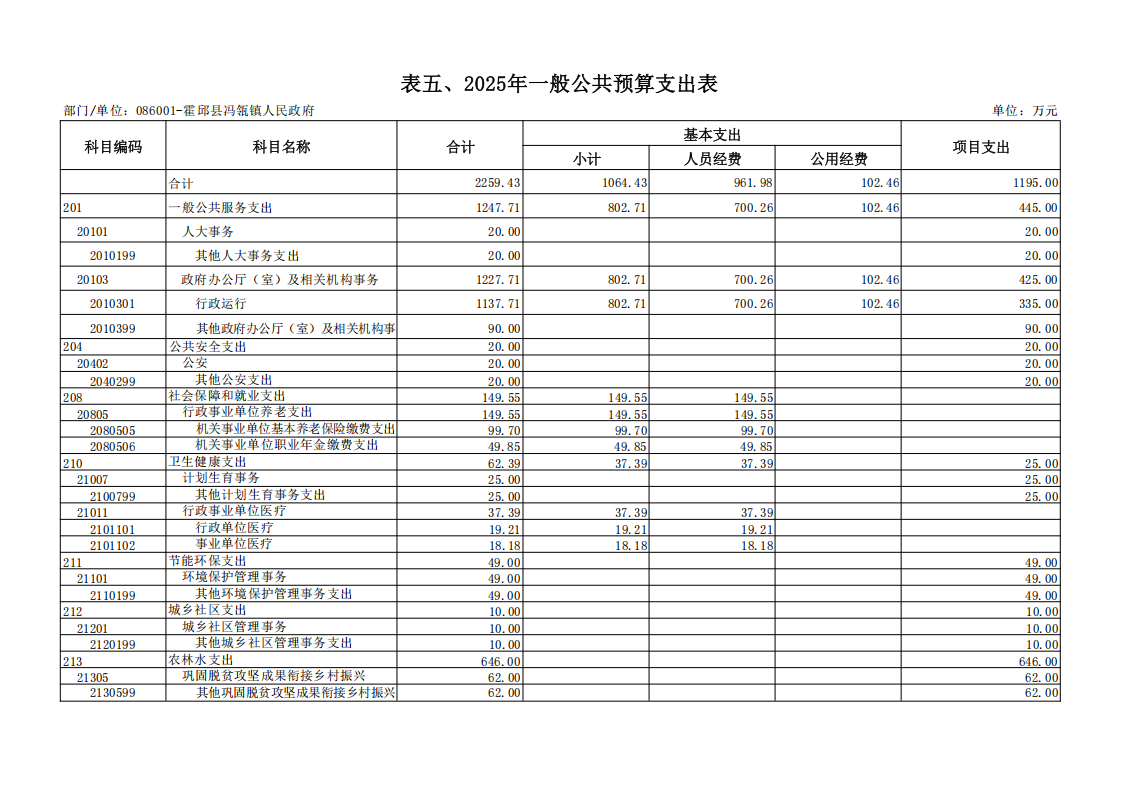 霍邱县冯瓴镇人民政府2025年部门预算公开