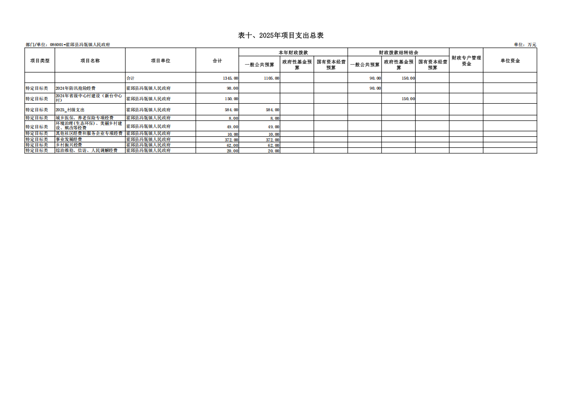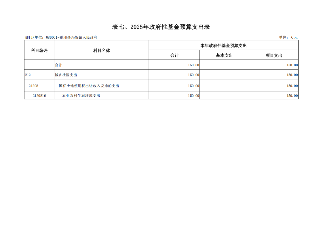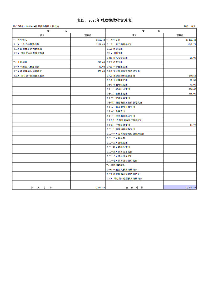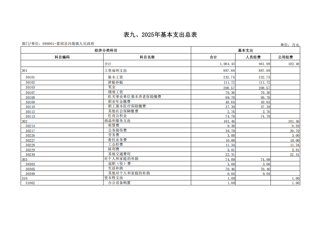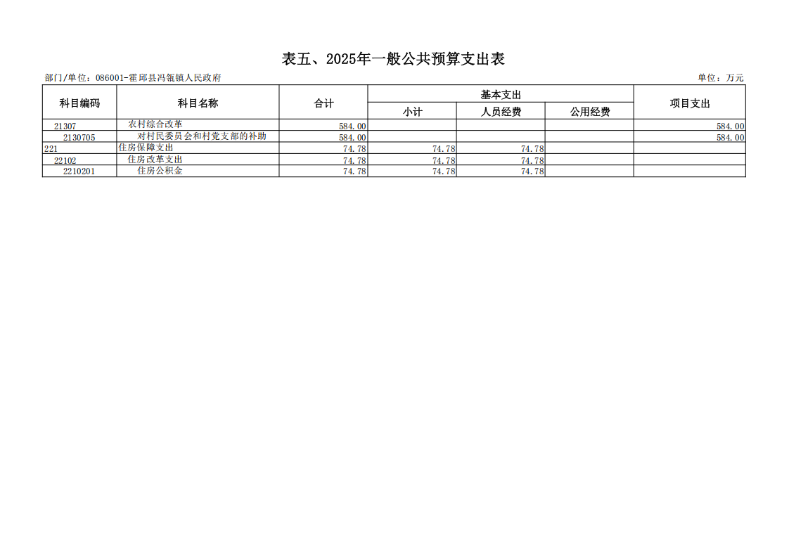 霍邱县冯瓴镇人民政府2025年部门预算公开