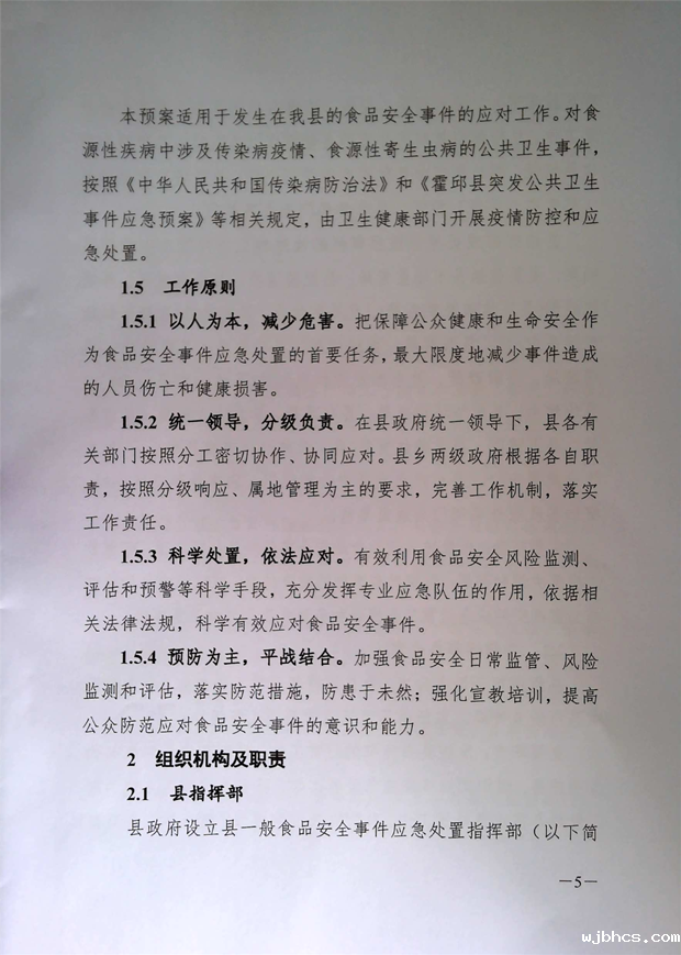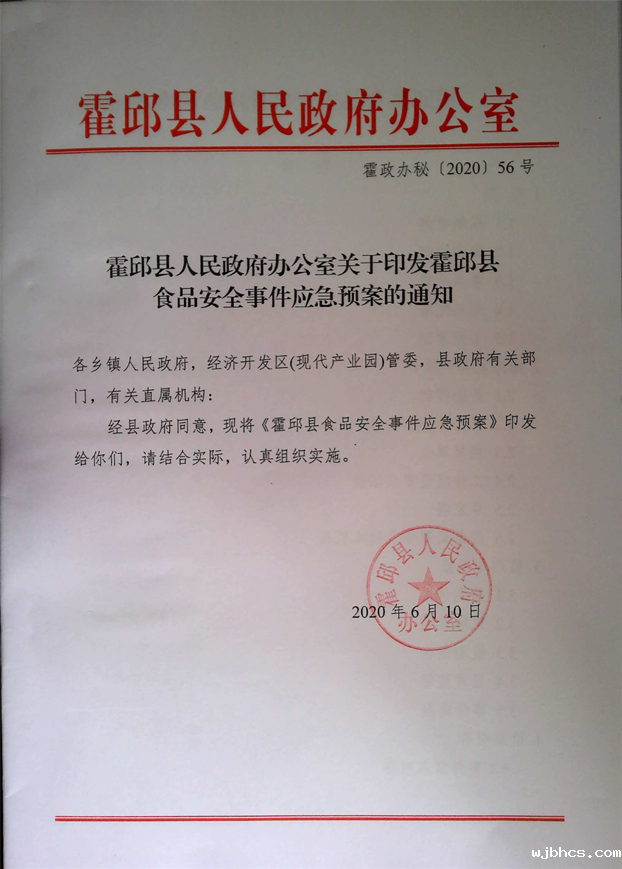 【公共卫生事件类预案】关于印发霍邱县食品安全事件应急预案的通知