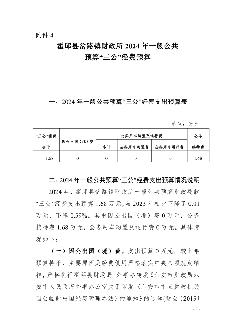 霍邱县岔路镇财政所2024年一般公共预算“三公”经费预算