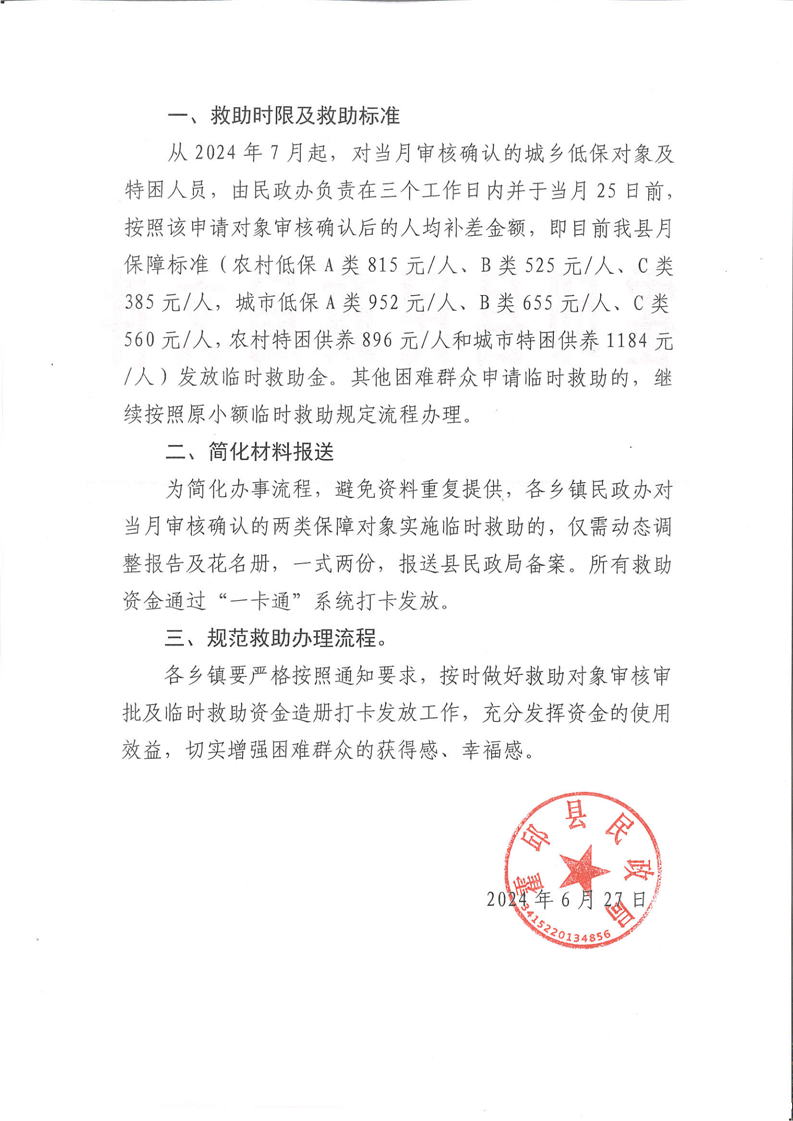 【管理办法 分配标准】霍邱县民政局关于对新审核确认的低保、特困人员实施临时救助工作的通知